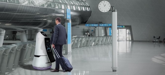 روبات راهنمای فرودگاه شرکت الجی که به زودی در فرودگاه بینالمللی اینچئون کره جنوبی آغاز به کار خواهد کرد در واقع محصولی هوشمند است که میتواند اطلاعات مربوط به سفر، شماره گیت، گزارش وضعیت هوا، زمان فرود و بلندشدن هواپیما و دیگر اطلاعات ضروری برای مسافران یا دیگر افراد را در اختیار آنها قرار دهد. این روبات حتی در یافتن مسیر و تخمین زدن زمانی که باید برای رسیدن به مقصد صرف شود نیز راهنمای افراد خواهد بود.
