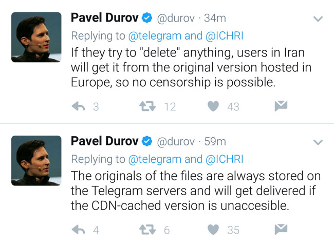 "اگر آنها بخواهند چیزی را حذف کنند، کاربران در ایران نسخه اصلی را از سرورهای واقع در اروپا دریافت خواهند کرد، بنابراین سانسور کردن ممکن نیست."