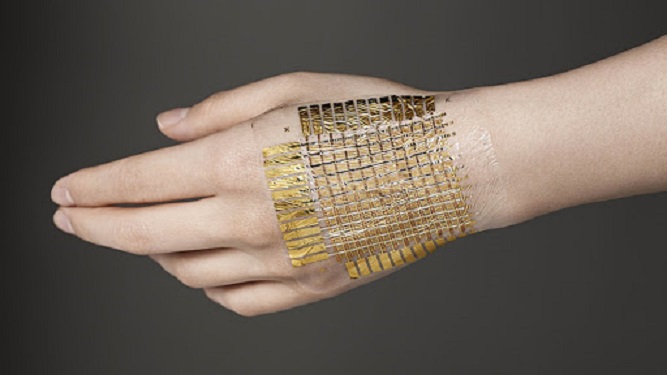 نمونه پوشیدنی اولیه این پوست الکترونیکی از مواد قابل انعطاف و بسیار نازک (اکسیدها و سیلیکونهای سازگار با زیست) تولید شده که به کمک سنسورهای مختلف میتواند میزان فشار و حرارت را تشخیص دهد. این پوست الکترونیکی با دقت بسیار بالایی تولید شده، به همین دلیل تفاوت میان درد حاصل نیشگون گرفتن با فرو رفتن یک جسم تیز مانند سوزن را تشخیص میدهد.