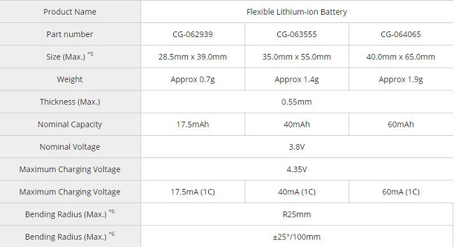 بنا به اطلاعات منتشر شده از سوی پاناسونیک، این باتری منعطف و قابل شارژ می تواند در مقابل خمش از استانداردهای موجود پیروی کند. این باتری قابلیت آن را دارد که در شعاع 40 میلی متر و زاویه 15 درجه خم شود. از طرفی با پیچش و خم کردن متعدد، این باتری ویژگیها و خصوصیات خود همچون شارژ و دشارژ شدن پیاپی را حفظ میکند.
