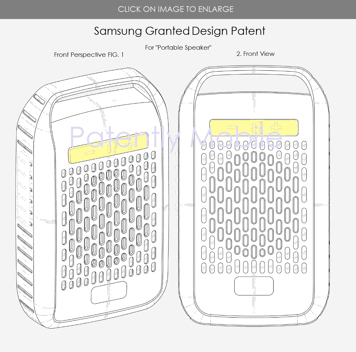 تصاویری که در ادامه آورده شده شامل طرحهای دیاگرامی از زوایای مختلف یک بلندگوی قابل حمل و یک ساعت هوشمند هستند و اطلاعات خاصی درباره مشخصات و ویژگیهای این محصولات در آنها به چشم نمیخورد.