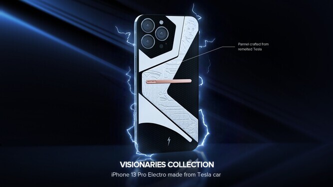 شرکت Caviar سابقهای طولانی در تولید گوشیهای لاکچری دارد و آیفونهایی مزین به دندان دایناسور، یاقوت، الماس، طلا و چرم برای مشتریان سختپسند و ثروتمند خود میسازد. حال این شرکت یک آیفون با چهرهای آیندهنگرانه ساخته که از قطعات ماشینهای تسلا به وجود آمده است.