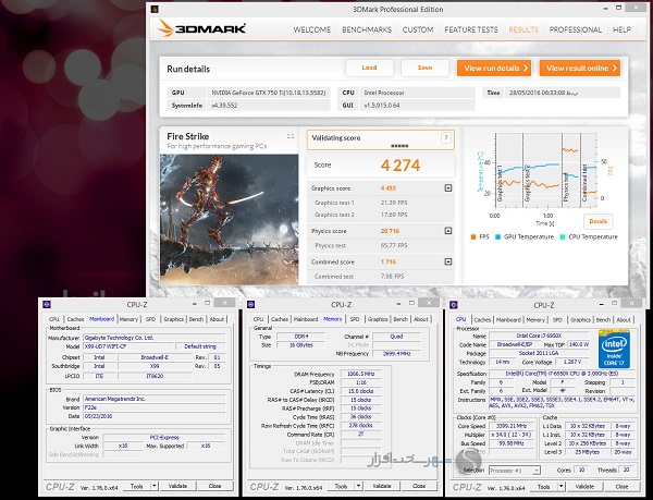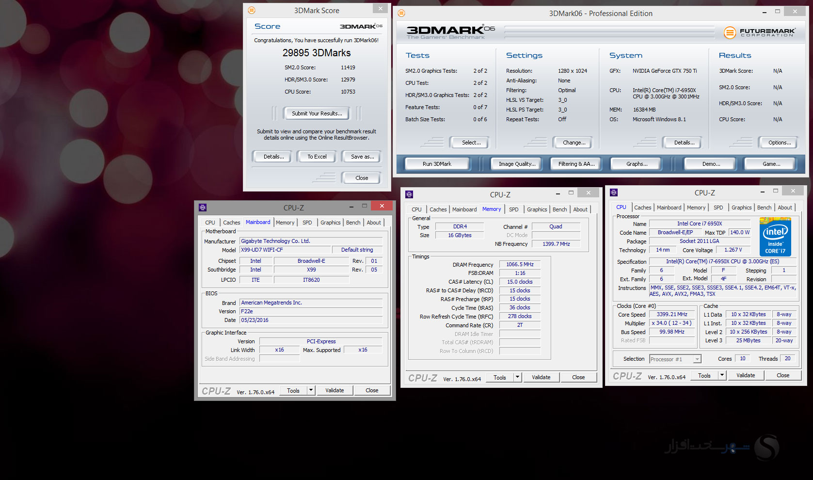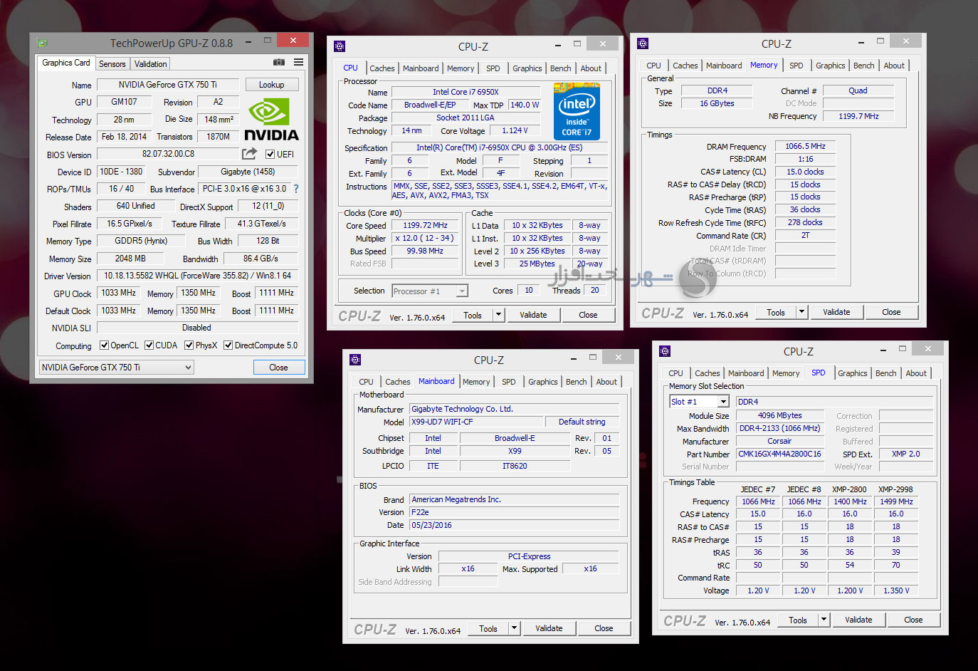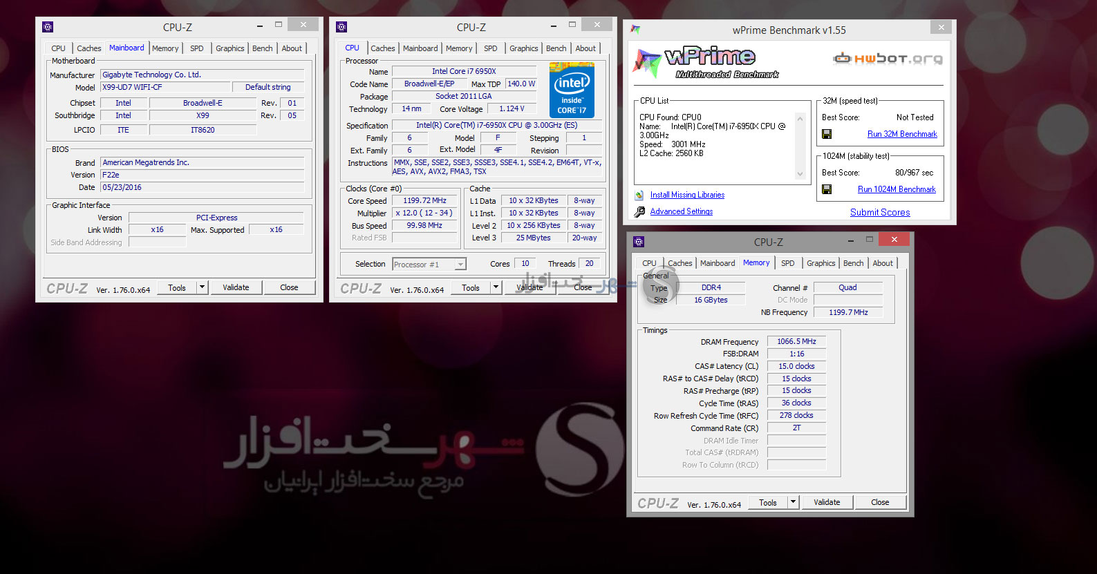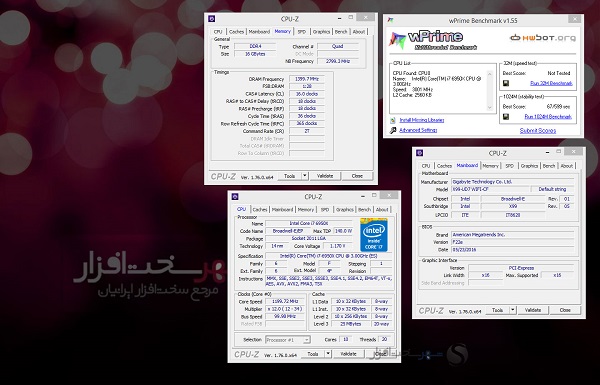 مشخصات این پردازنده و سیستم تست بد ما را از نگاه CPU-Z و GPU-Z خوب بخاطر بسپارید تا از نتایج حیرت انگیز شوکه نشوید! پردازنده Core i7-6950X، این تراشه را به معنای واقعی کلمه می توان یک هیولا خواند، 10 هسته پردازشی فیزیکی (20 هسته پردازشی منطقی)، 64 کیلوبایت حافظه کش سطح اول، 2.560 مگابایت حافظه کش سطح دوم، 25 مگابایت حافظه کش سطح سوم، کنترلر حافظه 4 کاناله و...، مگر یک تراشه تا چه حد می تواند قدرتمند باشد؟!