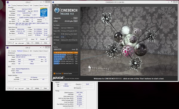 حالا به یکی دیگر از محبوب ترین بنچمارک ها، CineBENCH 11.5 می رسیم. همانند تست پیشین، ابتدا کارایی را با فرکانس حافظه 2133 مگاهرتز بررسی کردیم. عالی جناب 20 هسته ای امتیاز 19.16 pts را کسب کرد که این مقدار برای Core i7 6700K نزدیک به 9 pts است. بنابراین یکبار دیگر در این آزمون پردازنده Core i7-6950X نزدیک به 50 درصد سریعتر از Core i7 6700K ظاهر شد.