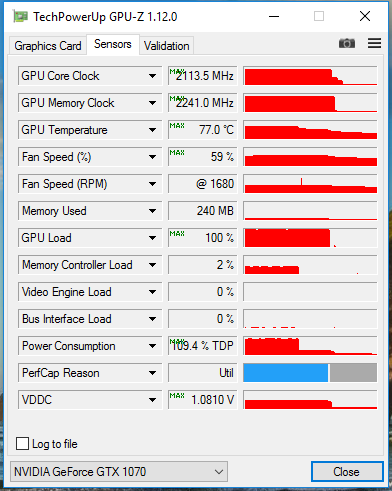 برای این منظور ابتدا ولتاژ هسته GPU، تراشههای حافظه و PLL را بر روی حداکثر مقدار ممکن تنظیم کردیم. سپس محدود کننده توان را نیز تا حداقل مقدار ممکن (120%) کاهش و محدودیتهای حرارتی را نیز تا 9 درجه سانتیگراد افزایش دادیم. در این وضعیت همانطور که ملاحظه میکنید در فرکانس توربو 1923MHz برای هسته GPU و 8968MHz برای حافظههای GDDR5 به مرز ناپایداری رسیدیم. این یعنی حدود 15% درصد اورکلاک هسته GPU و 12% درصد اورکلاک حافظه نسبت به فرکانس مدل مرجع که نتیجه خوبی محسوب میشود ولی در کل انتظارات ما از این مدل مخصوص اورکلاک به مراتب بیشتر از اینها بود؛ اما لازم میدانم 2 نکته را در مورد اورکلاک این کارت گرافیک بیان کنیم. مورد اول پتانسیل پایینتر تراشههای حافظه MICRON استفاده شده در این مدل نسبت به تراشههای SAMSUNG تعبیه شده در مدل مرجع و اکثر مدلهای مشابه است. مورد دوم نیز که البته کمی بیشتر برای ما عجیب است این موضوع است که این مدل حتی در فرکانسهای هسته GPU به مراتب بالاتر از این نیز کاملاً پایدار به نظر میرسید ولی این خطای مربوط به درایور بود که مانع از کامل شدن تستهای پایداری میشد. این در حالی است که در مدلهای مشابه هیچ گاه با این خطا روبرو نشده بودیم.