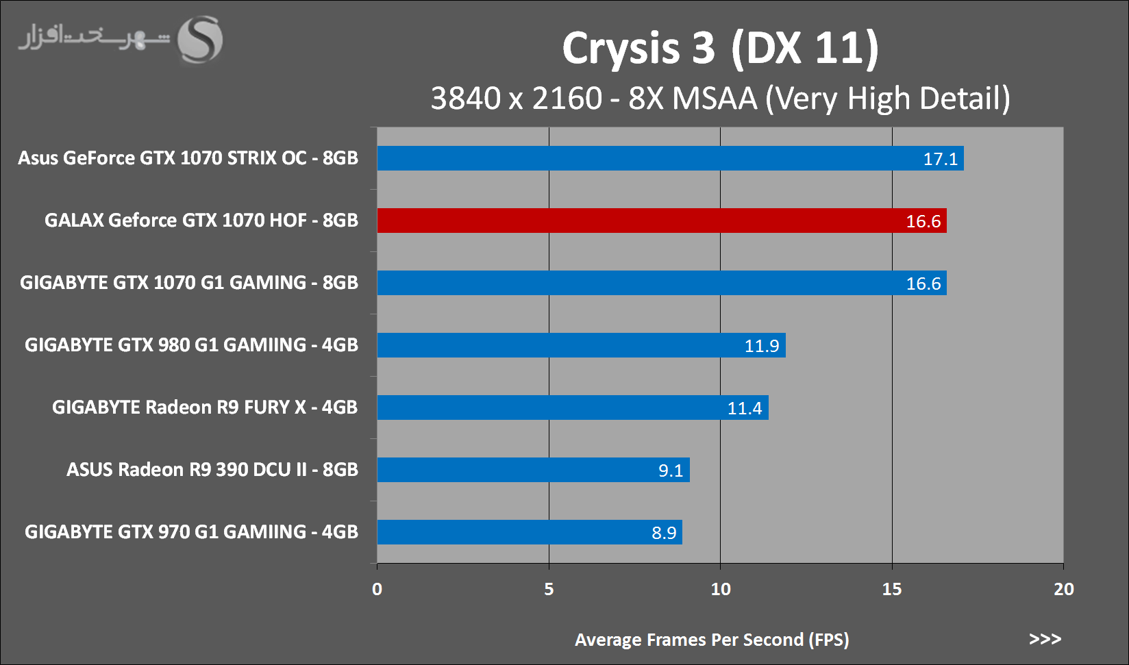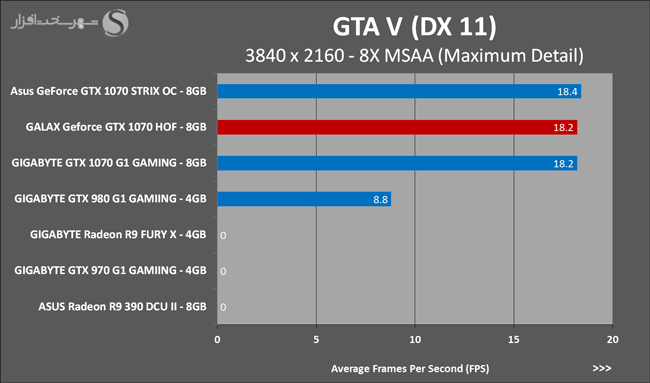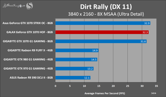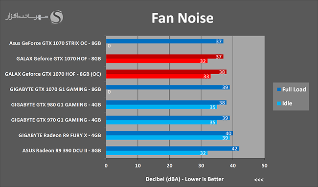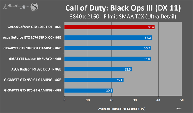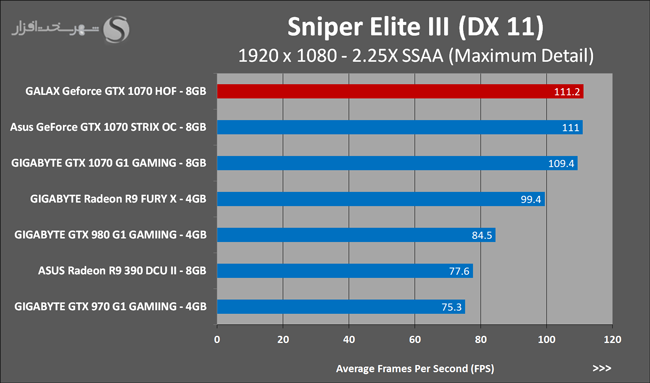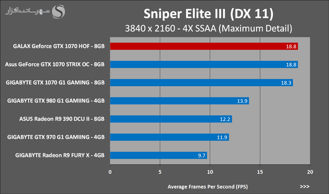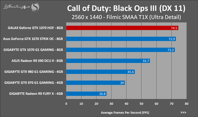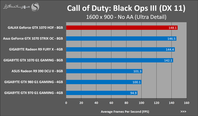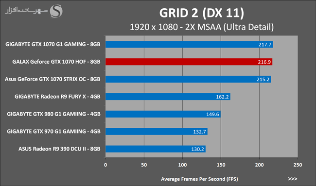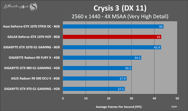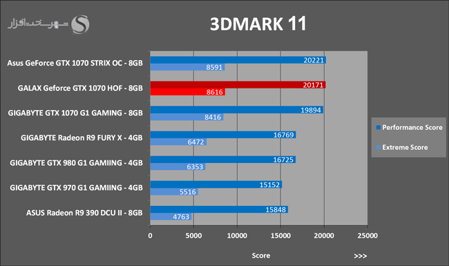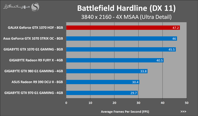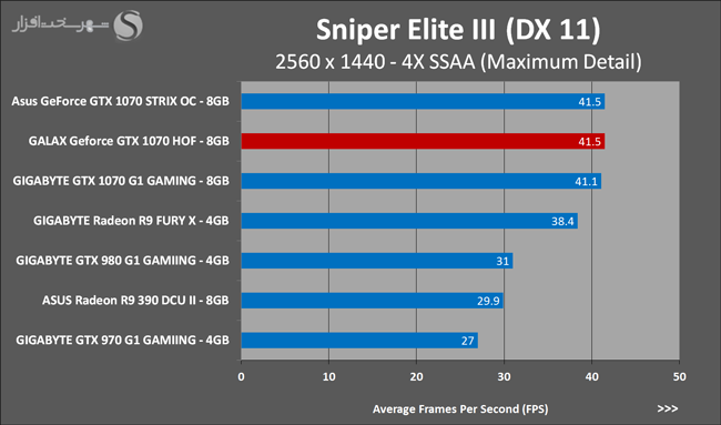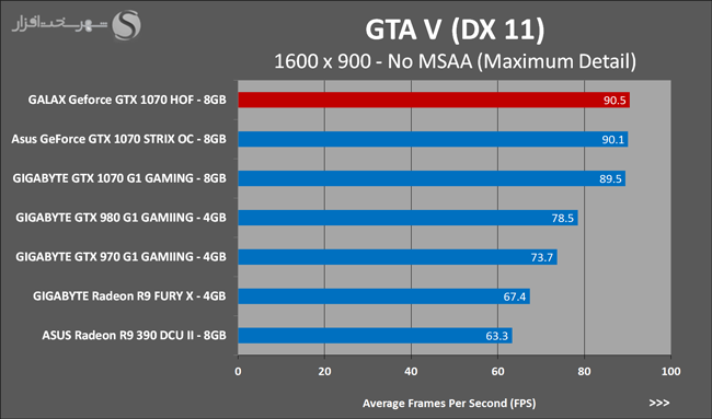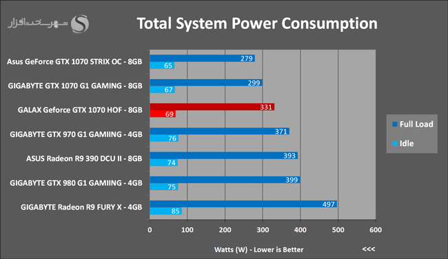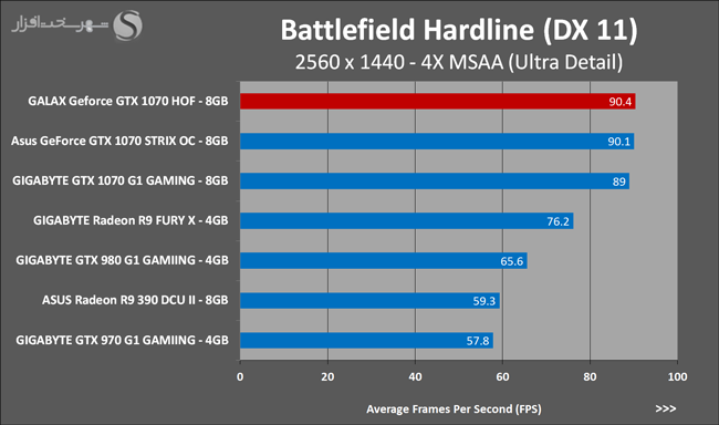 به روشنی مشخص است که کارایی Geforce GTX 1070 نسبت به نمونه مشابه نسل قبل خود (Geforce GTX 970) بیش از 50% افزایش داشته است! اما همانطور که در تست قبل به آن اشاره شد GALAX Geforce GTX 1070 HOF به دلیل تجهیز به کولر قدرتمندتر و محدودیتهای مدیریت مصرف انرژی کمتر در تستهای طولانی مدت که در آنها حرارت و مصرف انرژی GPU به حداکثر مقادیر تعیین شده نزدیک میشود عملکرد بهتری از خود ارائه کرده است!