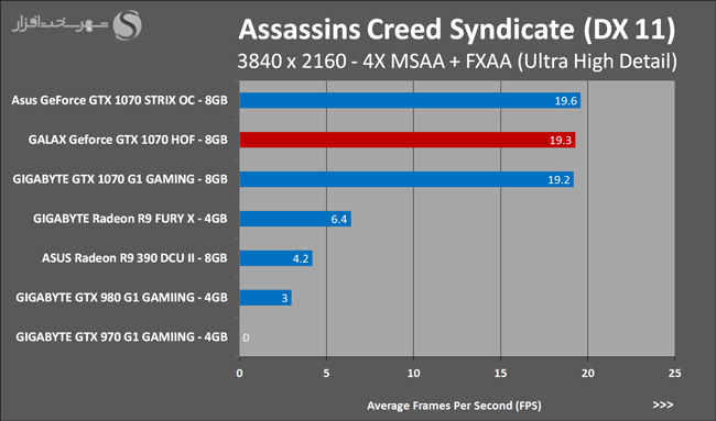 در گیم های مبتنی بر DirectX 11 کارایی معماری Pascal بسیار فراتر از حد انتظار است! نکته جالب توجه در این تست عملکرد حیرت انگیز Geforce GTX 1070 8GB در رزولوشن UHD – 8X MSAA است! جایی که عملکرد سامانه فشرده سازی رنگ در Pascal و همین طور 8GB حافظه این کارت گرافیک در عمل خود را نشان دادهاند. این در حالی است که تمامی مدلهای 4GB به دلیل کافی نبودن حافظه Frame Buffer یا با خطای درایور مواجه شدهاند و یا عملکردی کمتر از 5FPS داشتند.