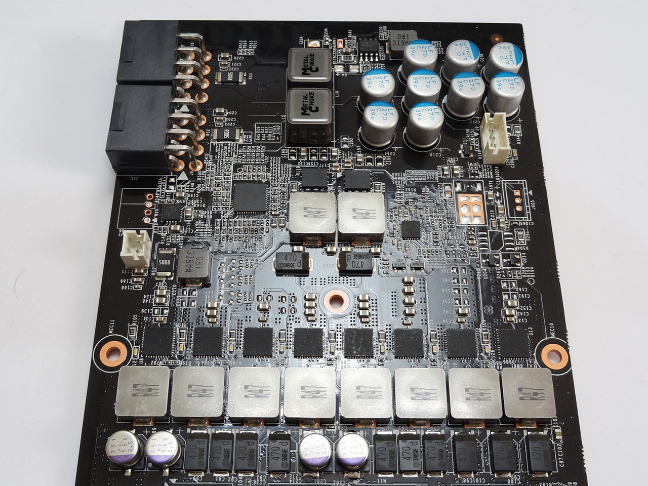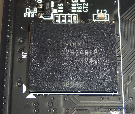 در تصویر بالا نمایی بسته از مدار رگولاتور ولتاژ این مدل را ملاحظه می کنید. به کارکیری از خازن های SMD Tantalum که دارای ویژگی های حرارتی و فرکانسی بسیار بهتری نسبت به خازن های معمولی و سالید هستند به همراه استفاده از ماسفت های مدرن DrMOS از جمله مهم ترین کامپوننت های به کار رفته در این مدار محسوب می شود.