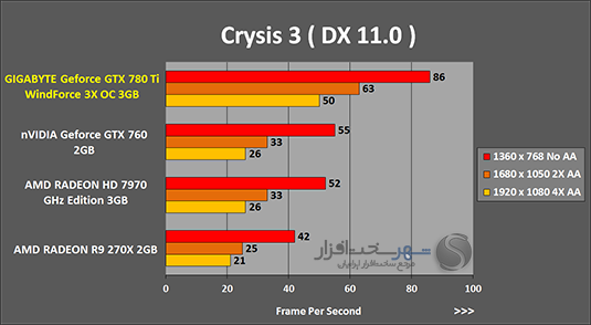 در این تست از نرم افزار Benchmark رسمی این بازی در بالاترین تنظیمات و کیفیت گرافیکی استفاده شده است.