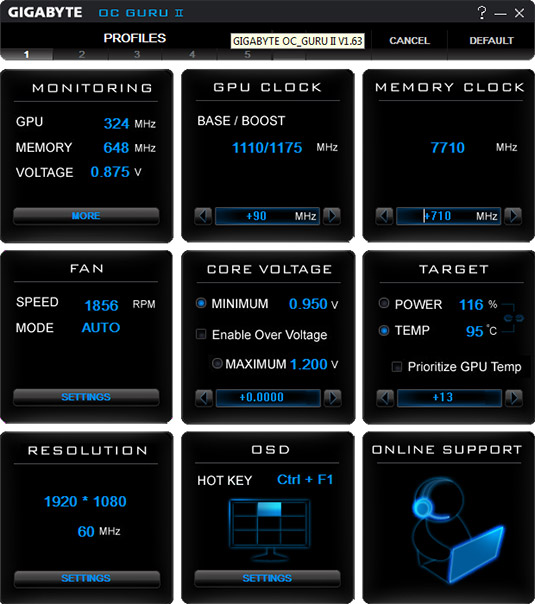 در این تست با استفاده از آخرین نسخه نرم افزار انحصاری کمپانی گیگابایت برای اورکلاک کارت های گرافیک ( OC GURU II ) اقدام به اورکلاک این مدل تا خرخره اورکلاک شده کردیم!