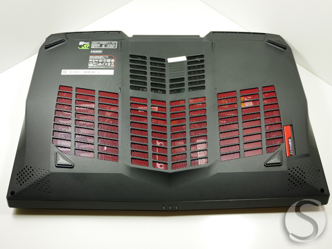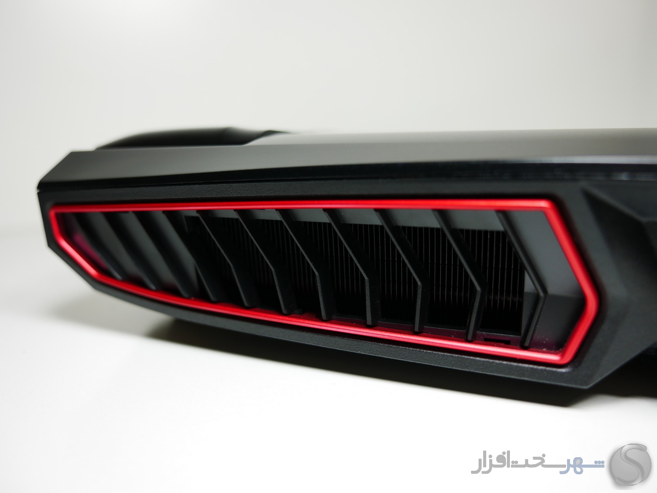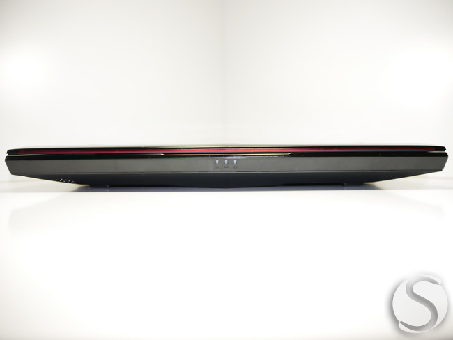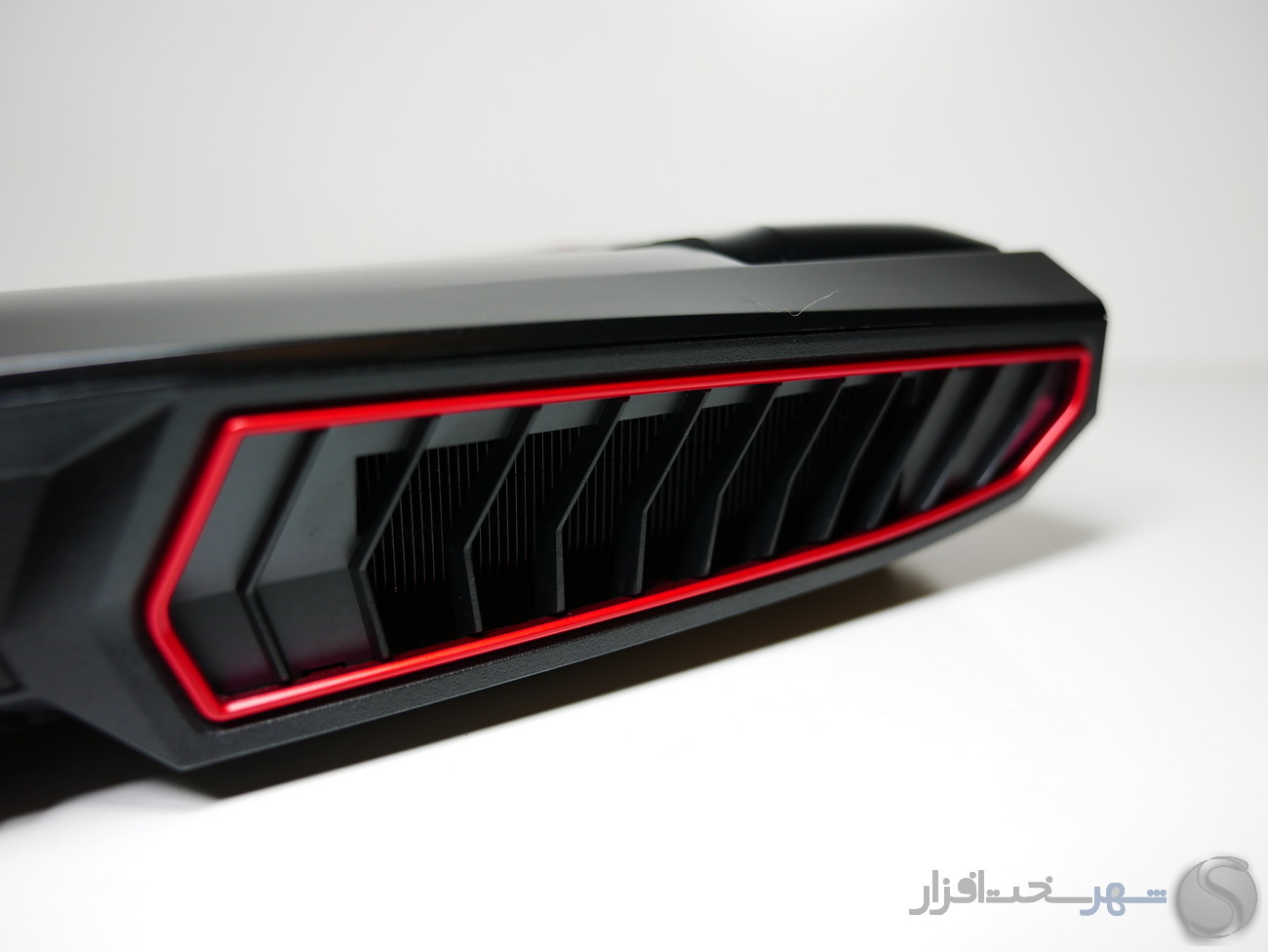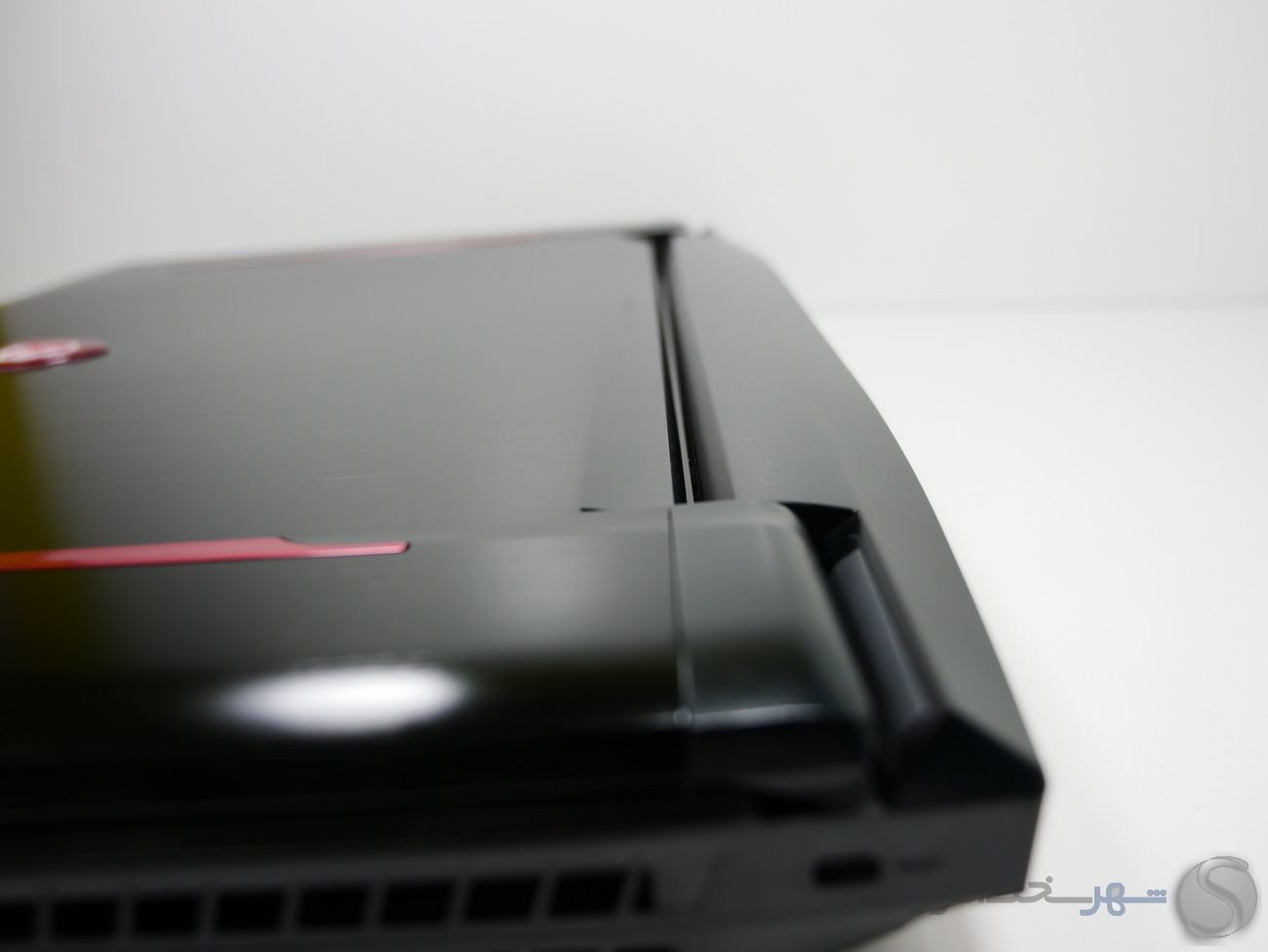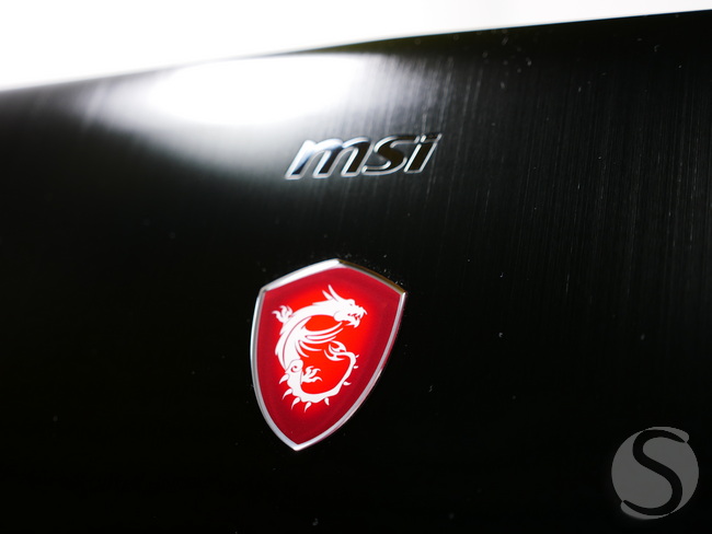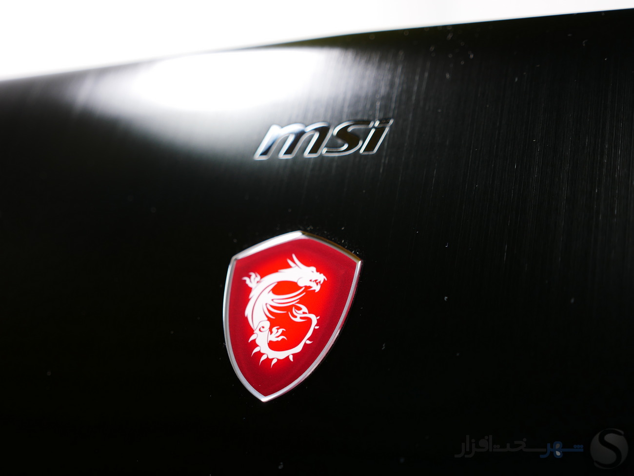 بر روی قاب پشتی نمایشگر، لوگوی جدید MSI Gaming Series دیده می شود و در اطراف آنها نیز دو نوار شیشه ای قرمز رنگ که به همراه لوگوی Gaming Series در حین روشن بودن دستگاه به رنگ قرمز در می آیند. لوگوی جدید MSI Gaming Series با روکشی از شیشه گوریلا پوشانده شده تا در مقابل خط و خش در امان باشد.
