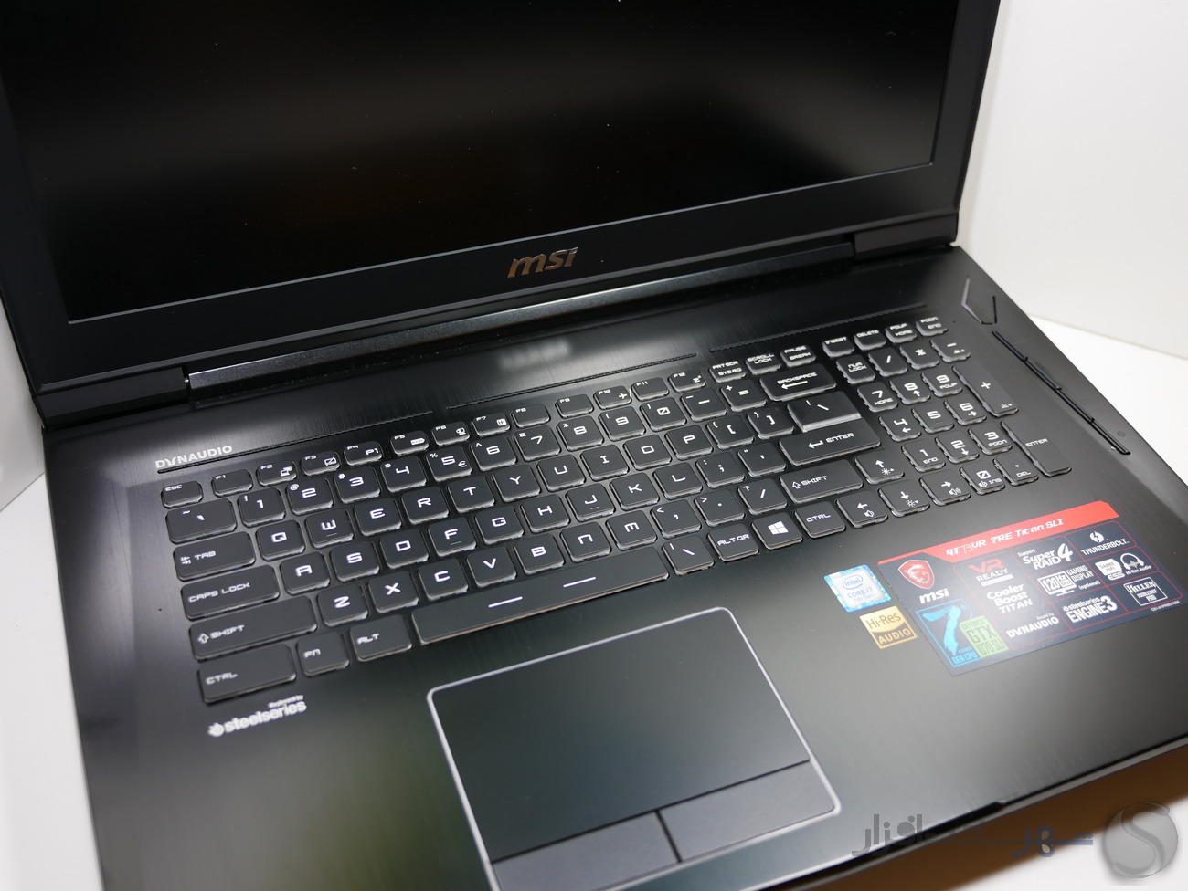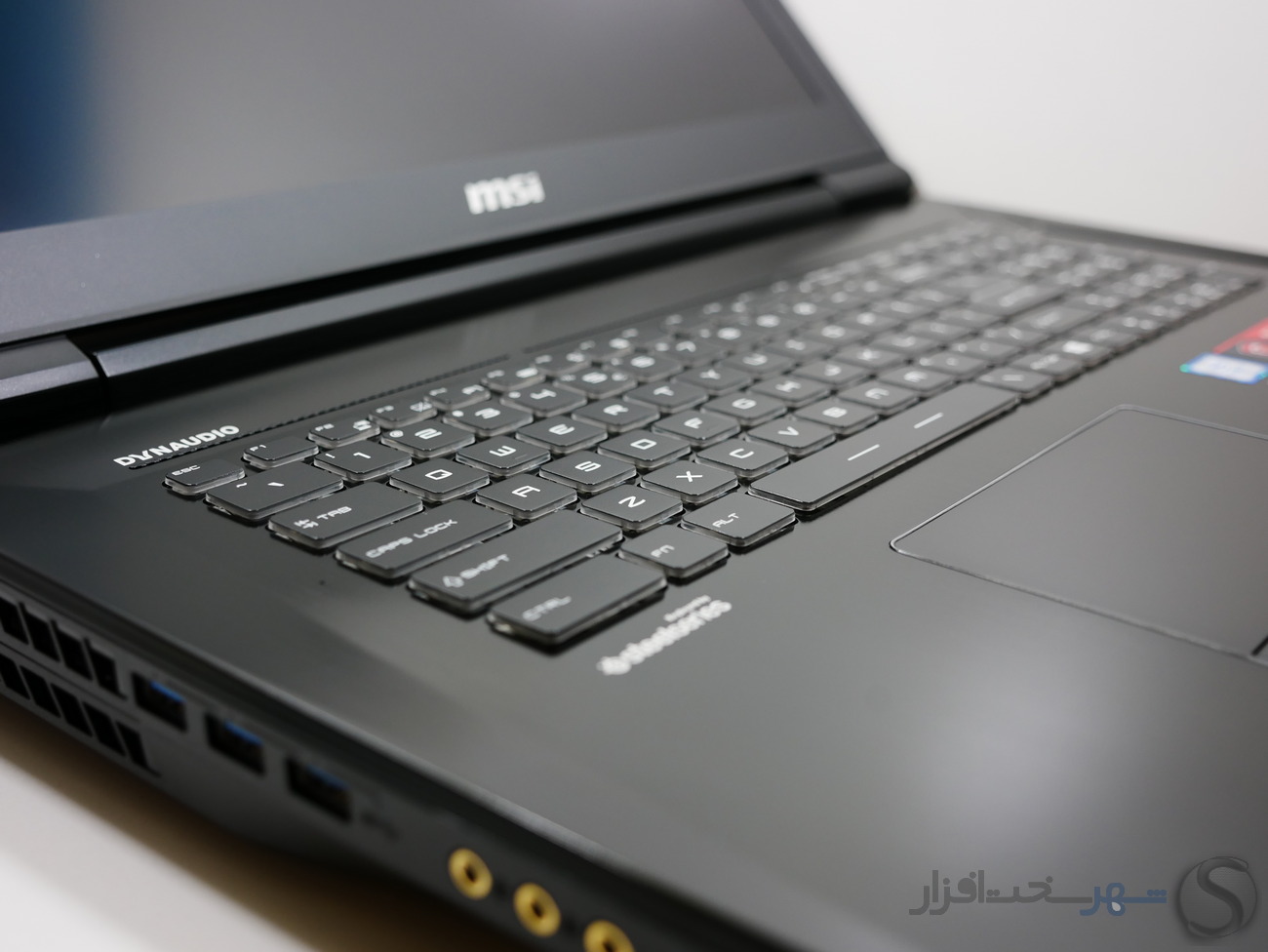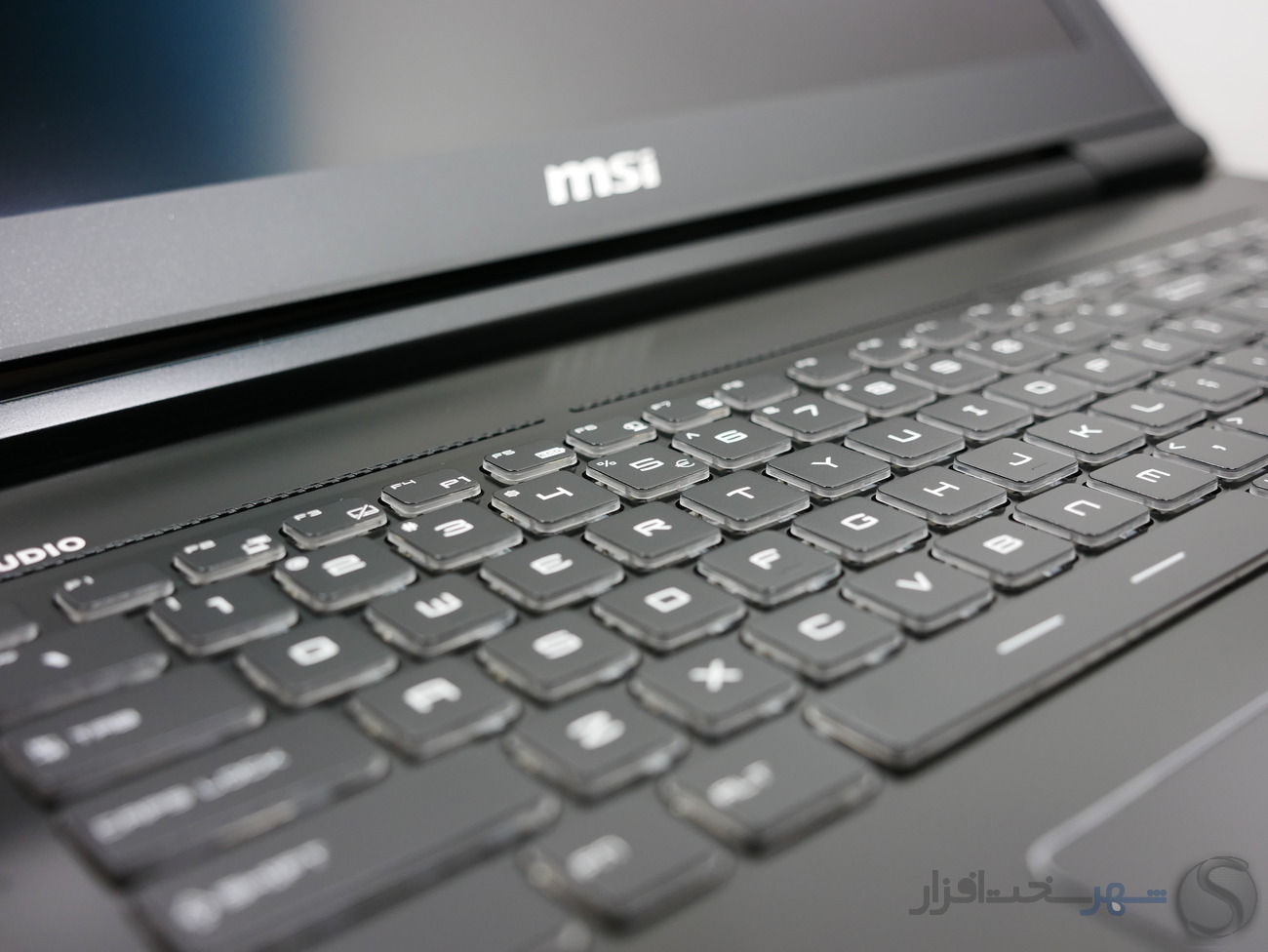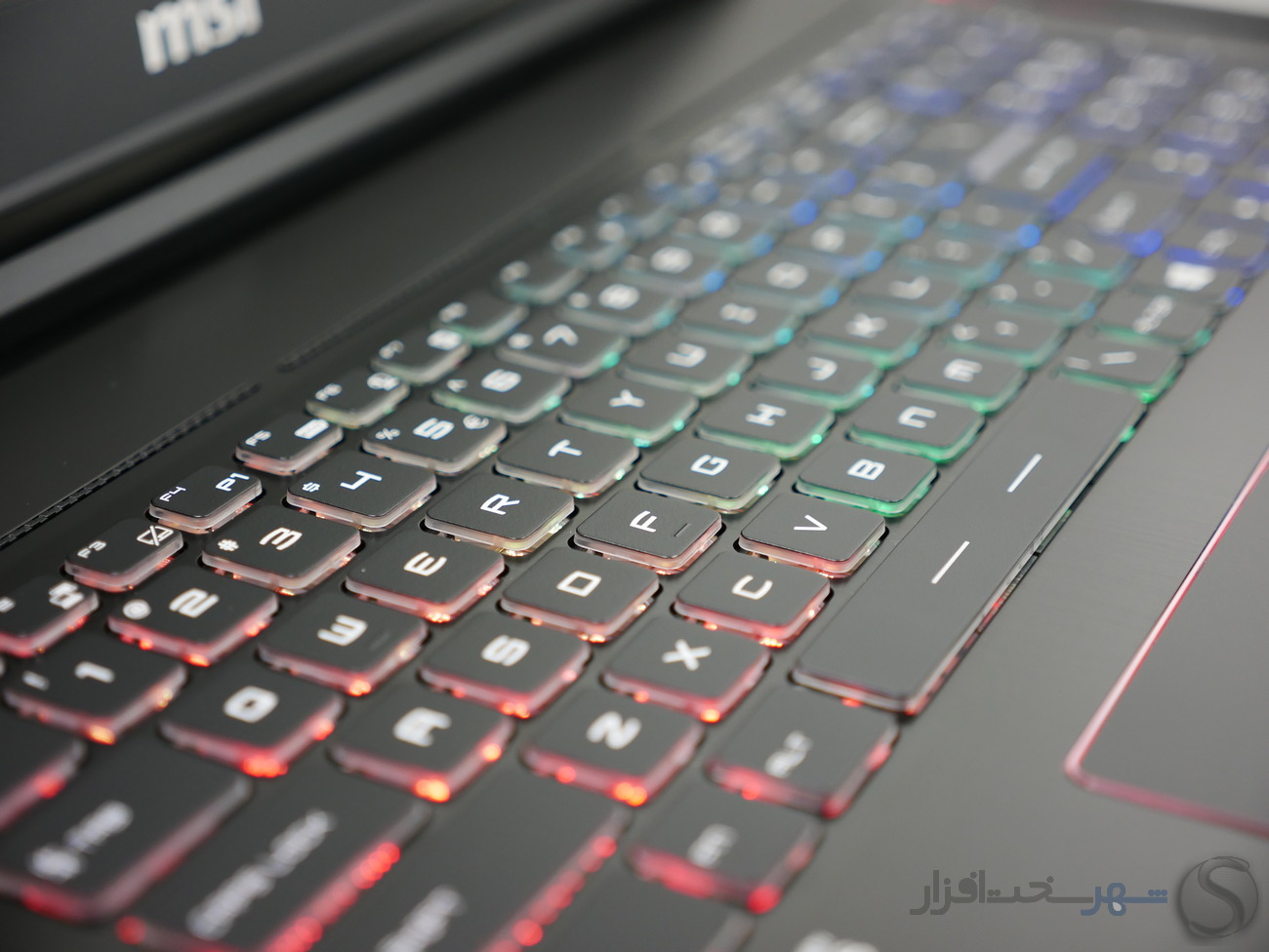 زیبایی بیشتر دستگاه زمانی نمایان می شود که نمایشگر را باز کنید. کیبورد پیشرفته SteelSeries به همراه تاچ پد بزرگ با حاشیه ی نورانی و کلیدهای کنترلی در سمت راست آن شما را به وجد خواهد آورد. برخلاف برخی سازندگان که ترجیح می دهند رنگ اطراف کیبورد و کلید ها را متضاد انتخاب کرده و ایجاد کنتراست کنند، MSI تمامی المان ها را از رنگ یکدست مشکی در نظر گرفته است.