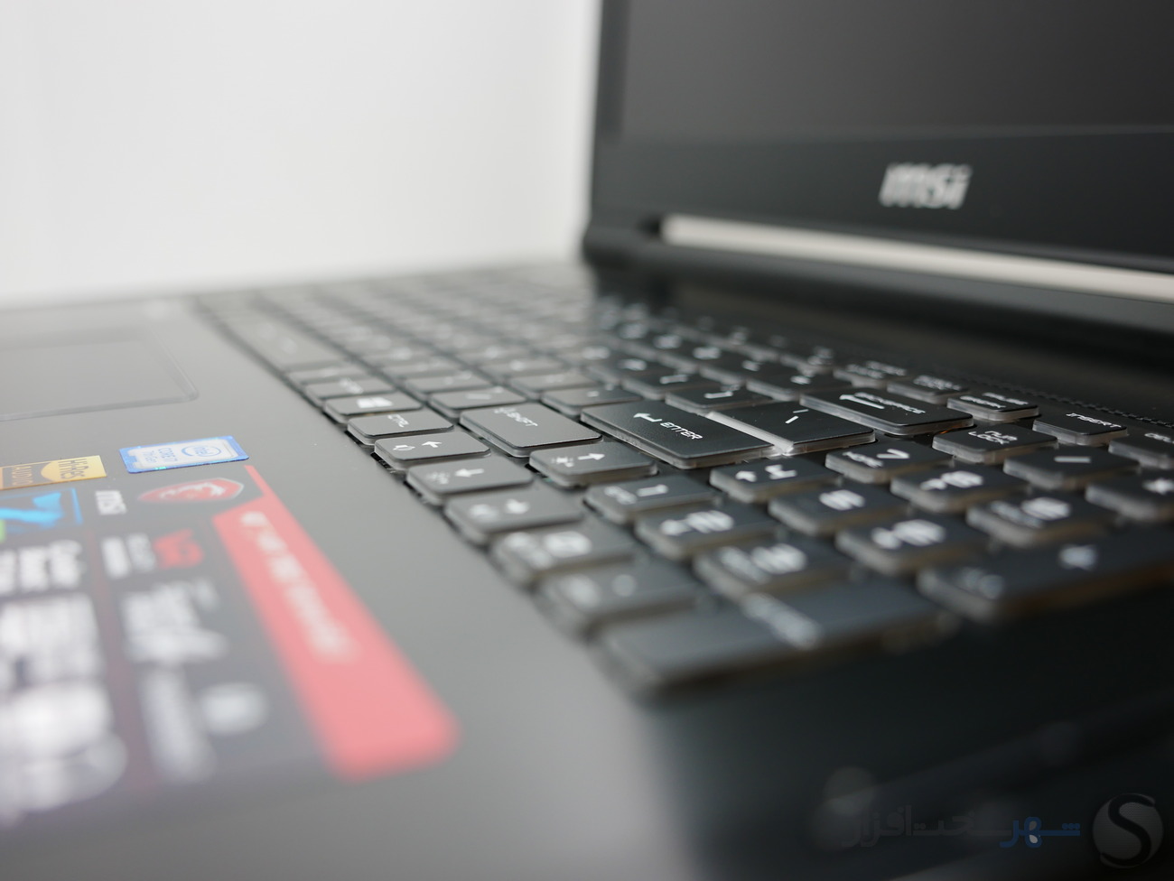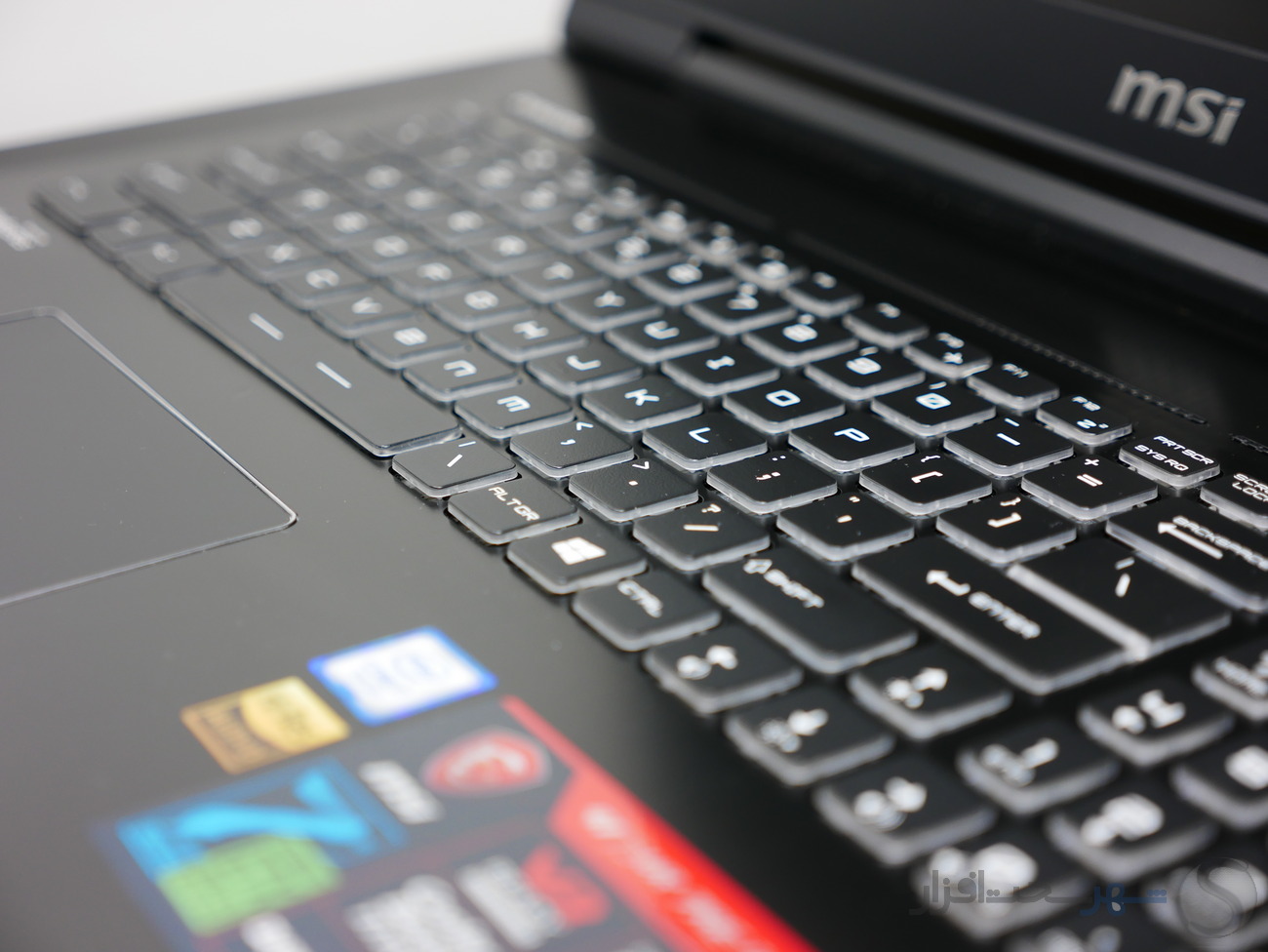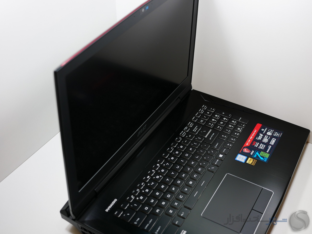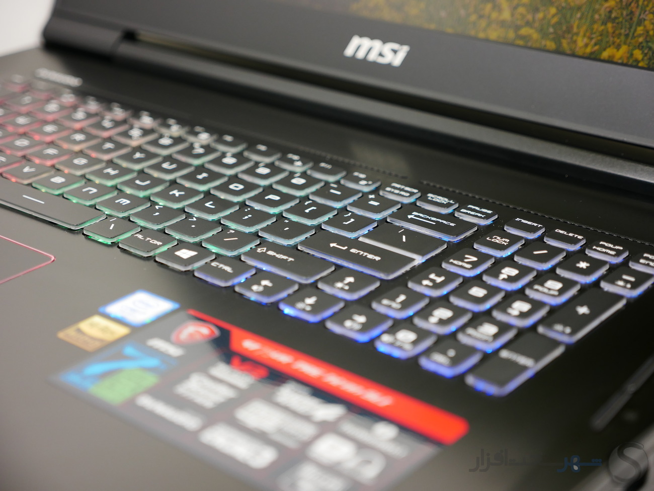 زیبایی بیشتر دستگاه زمانی نمایان می شود که نمایشگر را باز کنید. کیبورد پیشرفته SteelSeries به همراه تاچ پد بزرگ با حاشیه ی نورانی و کلیدهای کنترلی در سمت راست آن شما را به وجد خواهد آورد. برخلاف برخی سازندگان که ترجیح می دهند رنگ اطراف کیبورد و کلید ها را متضاد انتخاب کرده و ایجاد کنتراست کنند، MSI تمامی المان ها را از رنگ یکدست مشکی در نظر گرفته است.