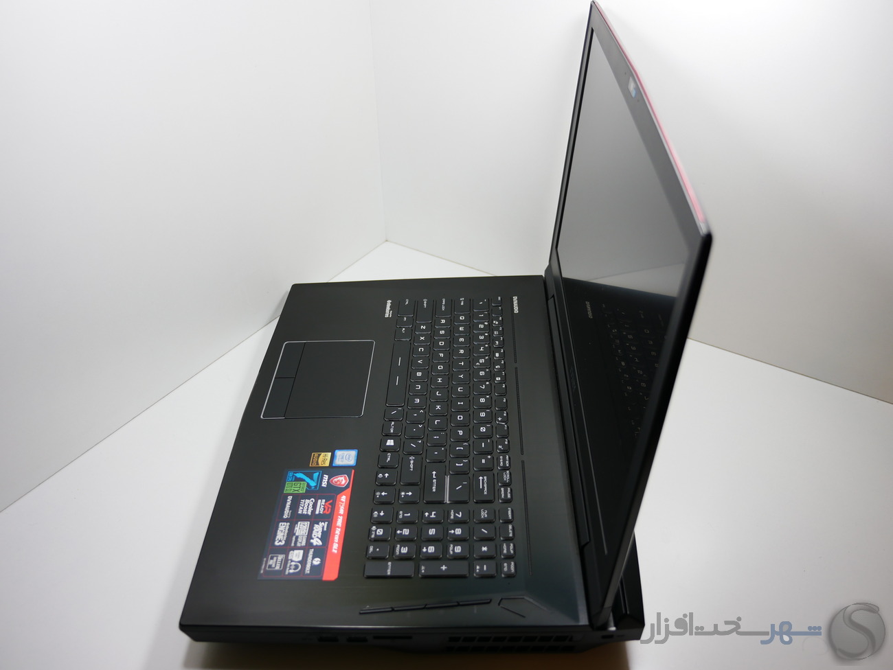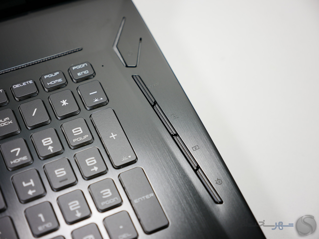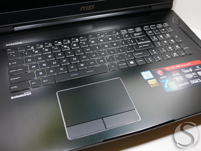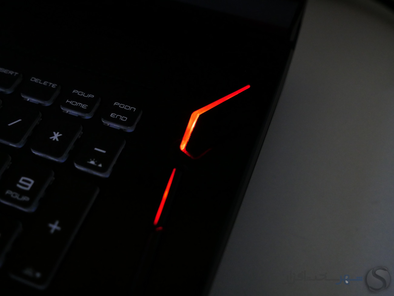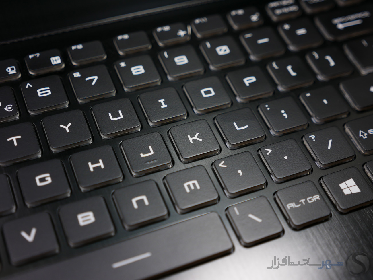 زیبایی بیشتر دستگاه زمانی نمایان می شود که نمایشگر را باز کنید. کیبورد پیشرفته SteelSeries به همراه تاچ پد بزرگ با حاشیه ی نورانی و کلیدهای کنترلی در سمت راست آن شما را به وجد خواهد آورد. برخلاف برخی سازندگان که ترجیح می دهند رنگ اطراف کیبورد و کلید ها را متضاد انتخاب کرده و ایجاد کنتراست کنند، MSI تمامی المان ها را از رنگ یکدست مشکی در نظر گرفته است.