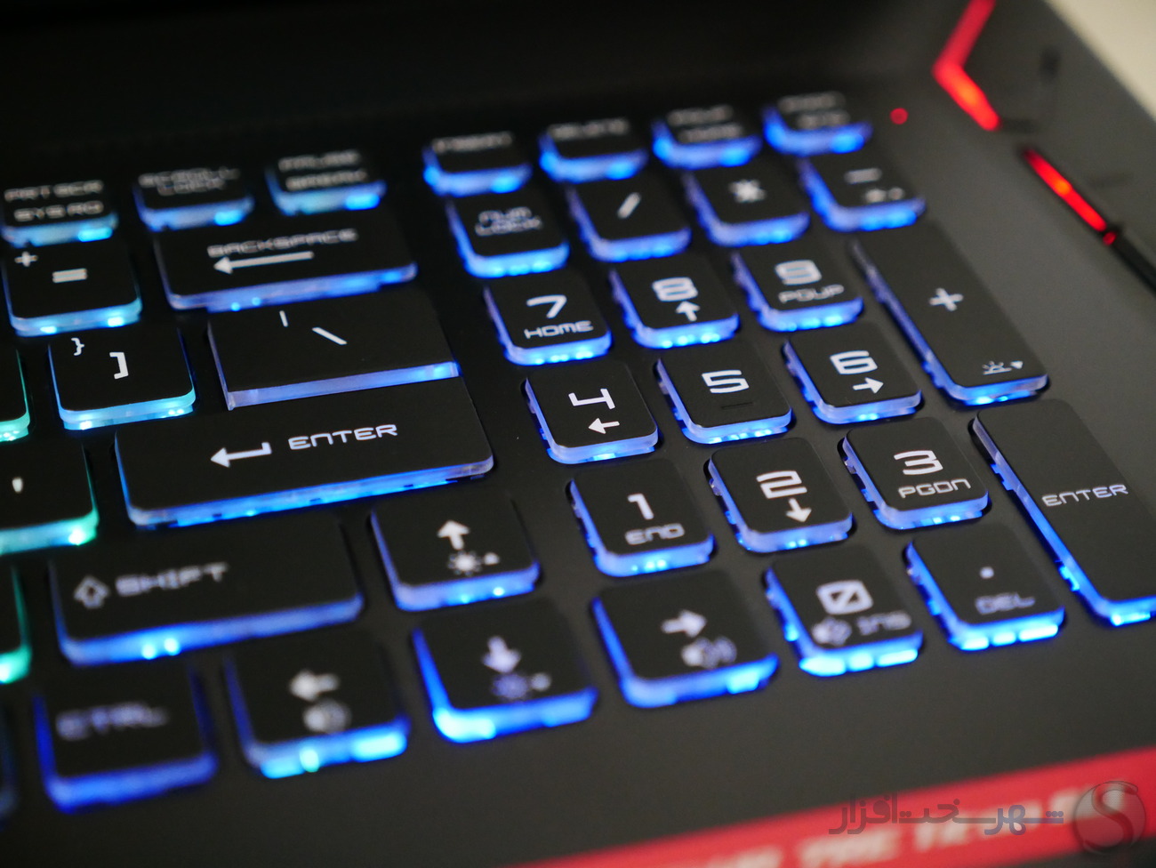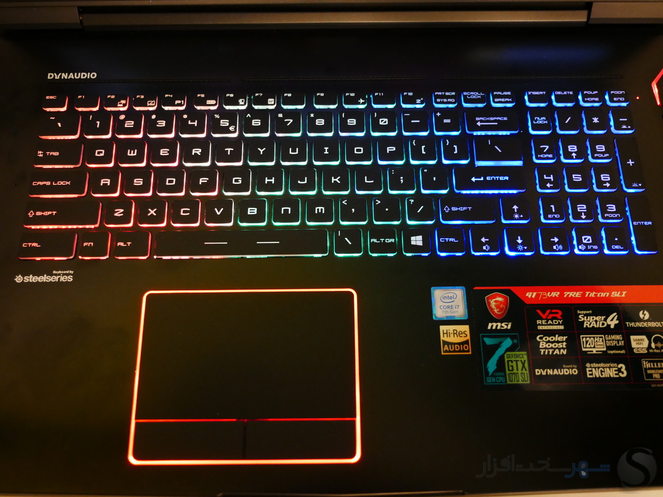 در نقد و بررسی های شهر سخت افزار از لپ تاپ های MSI، بارها از صفحه کلید این محصولات به عنوان نقطه قوت بسیار مهمی یاد کرده ایم. صفحه کلید GT73VR 7RE مانند دیگر مدلهای این شرکت ساخت کمپانی SteelSeries است و توجه ویژه ای به قابلیت های گیمینگ در آن شده است.