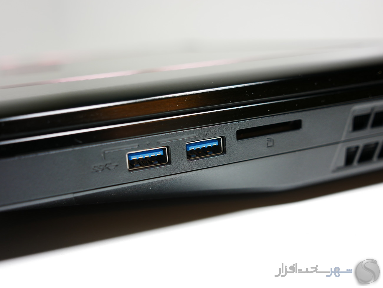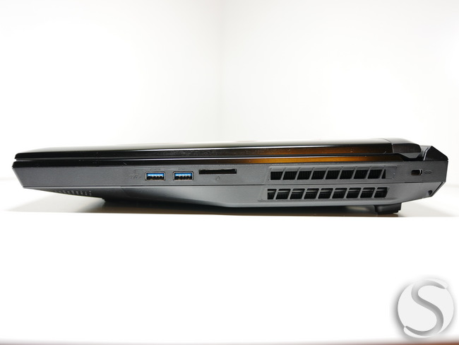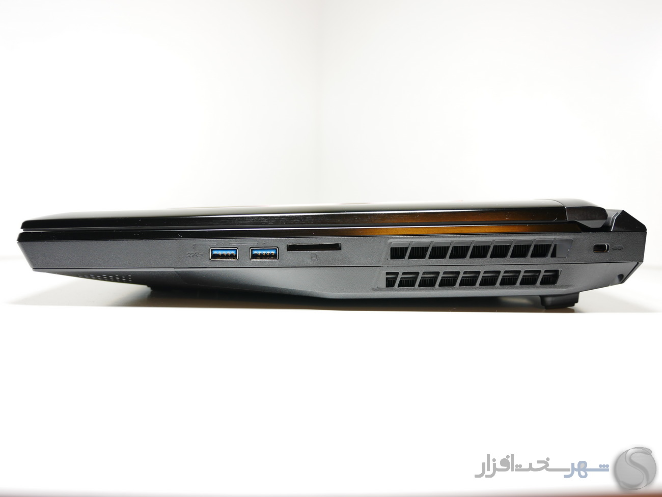 در لبه ی سمت راست دستگاه، دو پورت USB3.0، کارت خوان حافظه، خروجی هوای فن و قفل امنیتی Kensington قرار دارد.