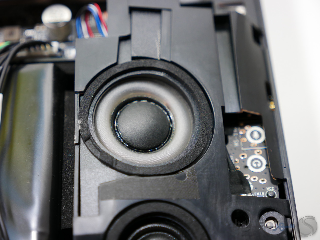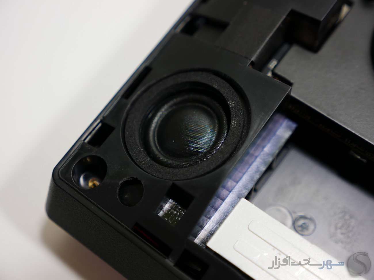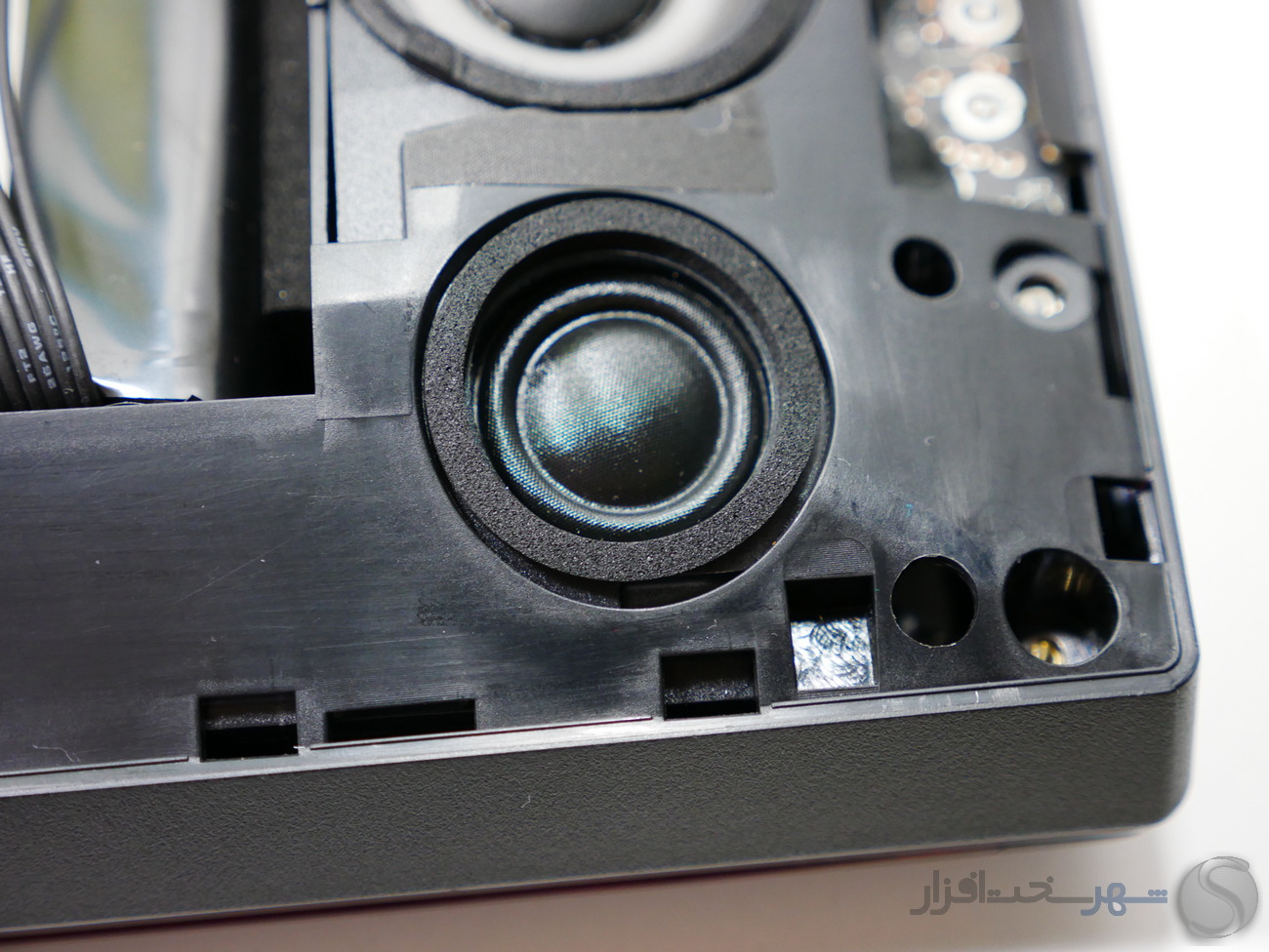 در قسمت زیرین و شاسی دستگاه هم با منافذ ورود هوا به داخل و همچنین محافظ ووفر 5 واتی Dynaudio و اسپیکرهای 3 واتی در طرفین روبرو هستیم.