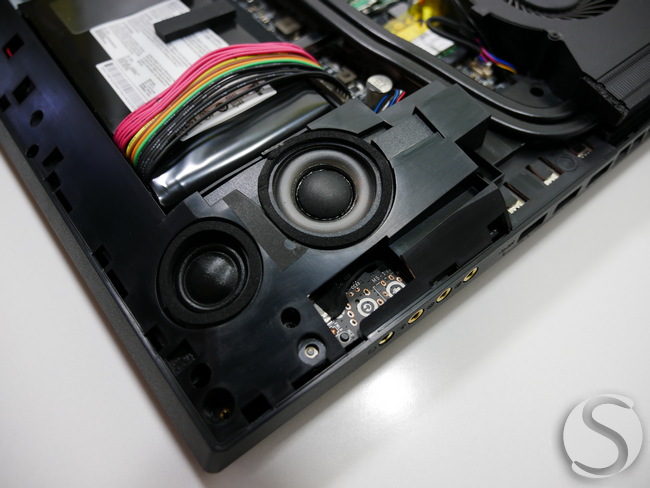 برای بخش اتصالات نیز، چهار جک 3.5 میلیمتری با روکش طلا برای هدفون، میکروفون، Line-in و Line-Out استفاده شده است. همچنین خروجی صدای این لپ تاپ، مجهز به رمزگشای ESS Sabre Hi-Fi با نرخ 24bit/192KHz بوده و تا 6.5 برابر جزئیات و دقت بالاتری نسبت به CD صوتی به همراه دارد.