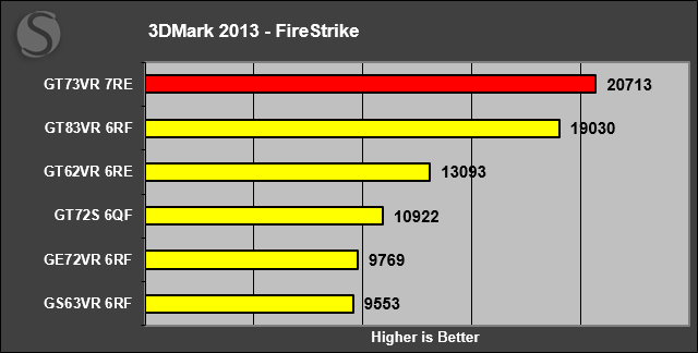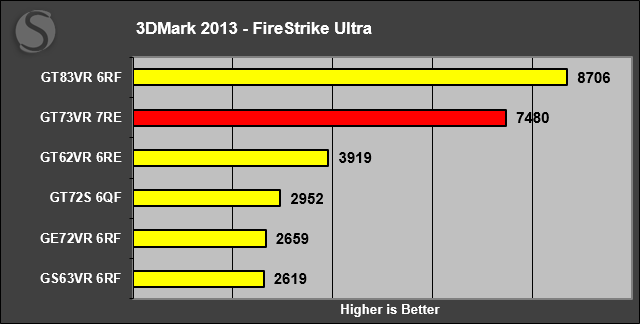 هر سه تست بالا برای GT73VR 7RE در حالت اورکلاک شده گرفته شده است و برتری آن در تست عادی Fire Strike به GT83VR با گرافیک GTX1080 SLI جالب است.