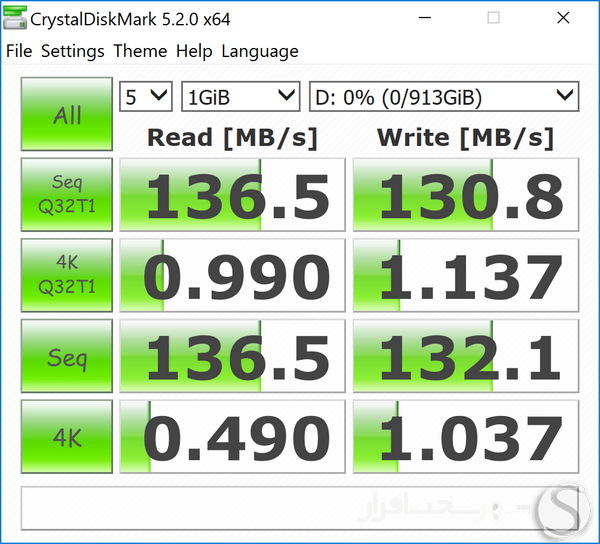 هارد دیسک 1 ترابایتی هم سرعت خواندن 136 مگابایتی و نوشتن 130 مگابایتی از خود ثبت کرده است. این نتایج با روشن بودن قابلیت X Boost بدست آمده است. باید اذعان کرد که این سرعت ها در حال حاضر جزو بالاترین نتایجی هستند که می توان بر روی SSD های مبتنی بر اسلات M.2 بدست آورد.