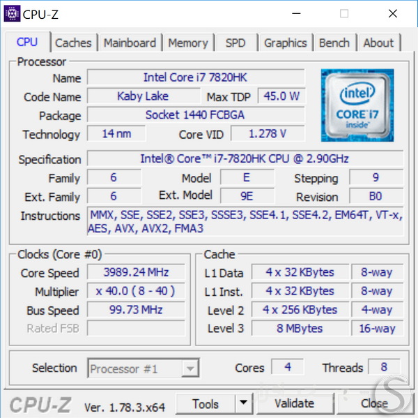پردازنده: Intel Core i7-7820HK 2.9GHz~3.9GHz / 8MB Smart Cache