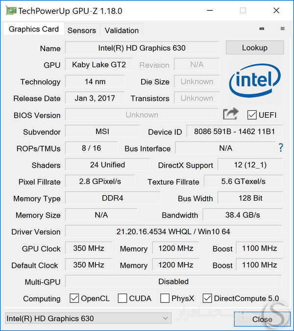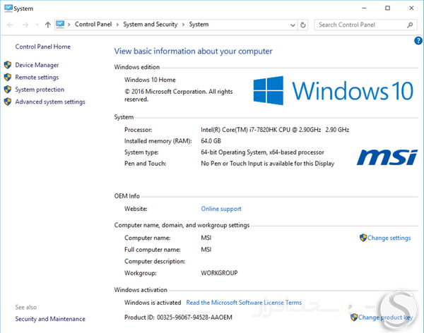 سیستم عامل: Microsoft Windows 10 Home 64bit