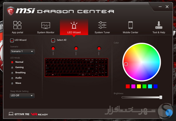 در سری جدید لپ تاپ های MSI، نرم افزار نام آشنای Dragon Center به کلی دگرگون شده است. در Dragon Center جدید همه چیز بطور یکجا پیش رویتان است و می توانید به تمام ویژگی ها و تنظیمات اختصاصی MSI دسترسی داشته باشید. فعال کردن قابلیت VR تا انتخاب پروفایل های رنگ از پیش تعیین شده اپلیکیشن True Color همگی در اینجا قرار دارد. البته هنوز برخی موارد نظیر اپلیکیشن کالیبره کردن باتری و Help Desk در Dragon Center ادغام نشده است اما همین که با یک اپلیکیشن همه چیز را تا حد زیادی در اختیار دارید و از پراکندگی و سردرگمی نجات پیدا می کنید یک مزیت خیلی خوب محسوب می شود.