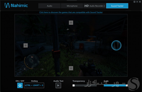 بخش دیگری که در Nahimic 2 معرفی شده است Sound Tracker است. این ویژگی مختص گیم و بازی به شما این امکان را می دهد تا صدای پای بازیکنان حریف را بر اساس یک رادار که درون بازی نمایش داده می شود، تشخیص دهید و مسیر حرکت آنها را از پیش بدانید! با فعال کردن این قابلیت هر زمان که وارد بازی شوید، یک دایره آبی رنگ در مکانی که شما تعیین می کنید به نمایش در می آید و با یک فلش مسیر حرکت بازیکنان مقابل را نشان می دهد.