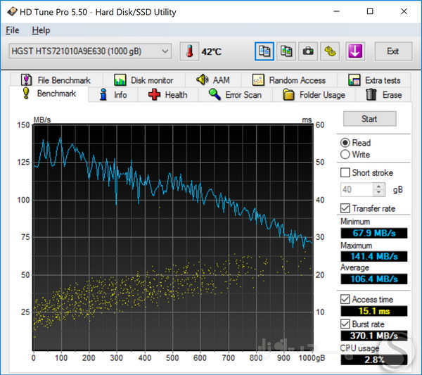 این نرم افزار نیز بطور اختصاصی برای سنجش سرعت و توانایی های هارد دیسک استفاده می شود. نتایج تست را در زیر مشاهده می کنید:
