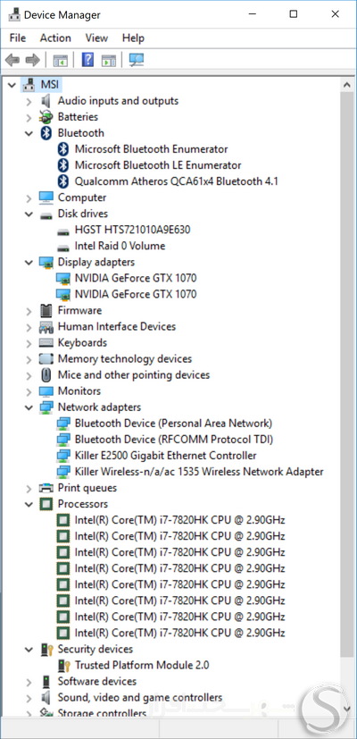 ابتدا نگاهی به اطلاعات سخت افزاری در Device Manager می اندازیم: