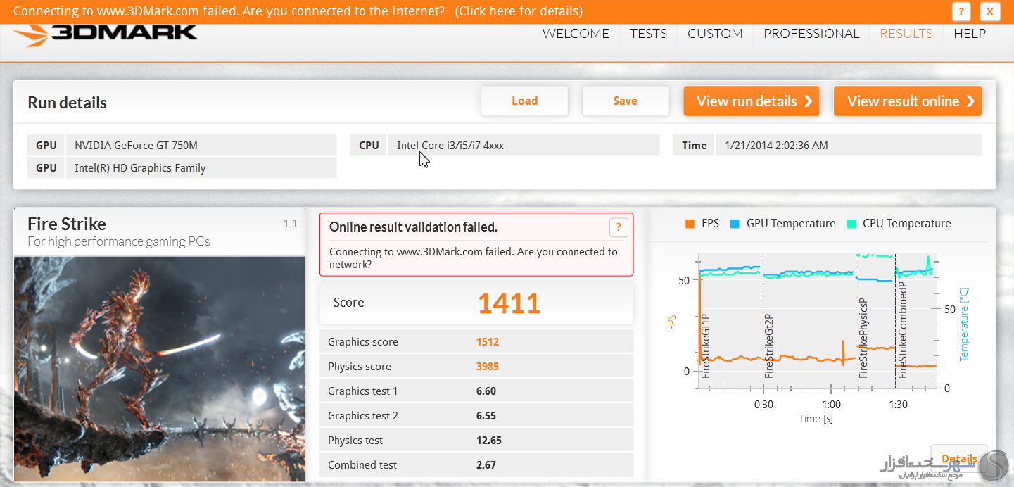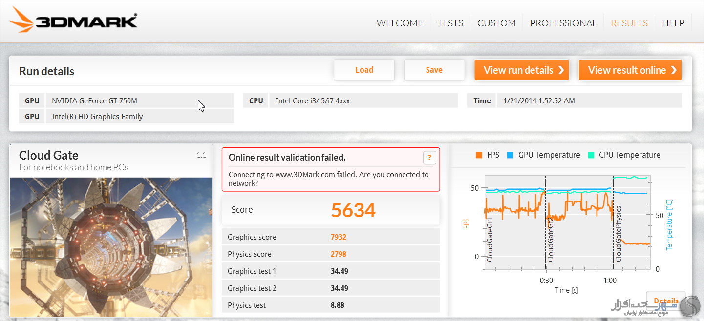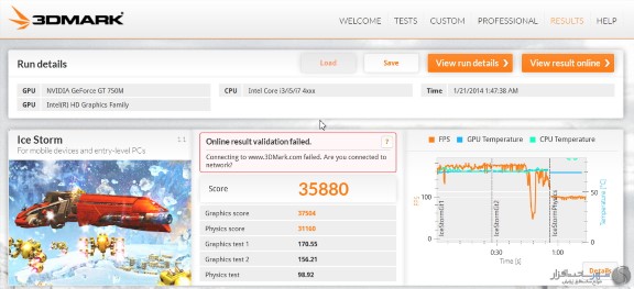 در نرم افزار 3DMark Professional نیز هر سه تست گرافیکی Ice Storm و Cloud Gate و Fire Strike اجرا گردید که نتایج به شرح زیر می باشد: