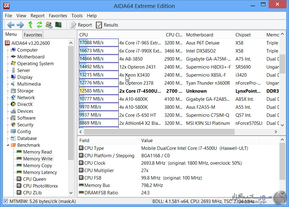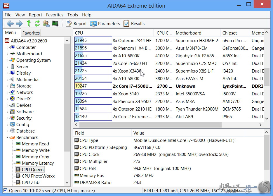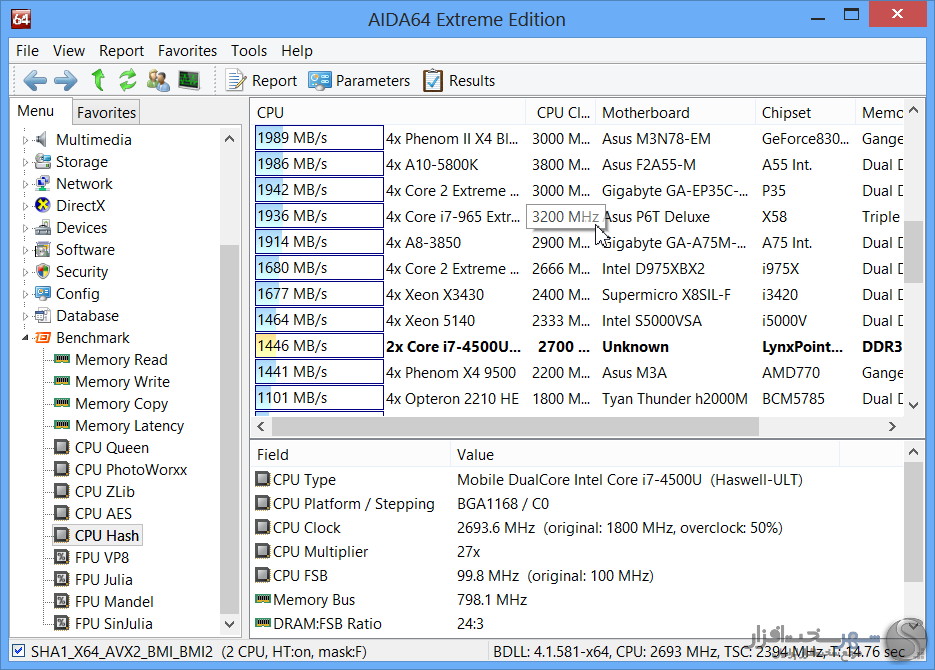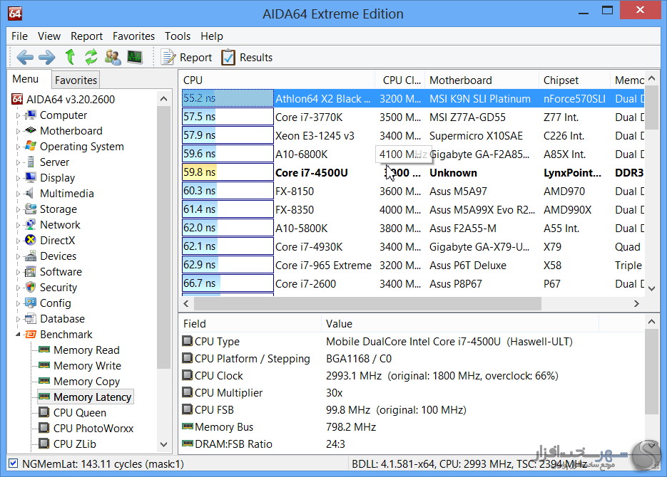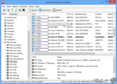 حال برای بررسی دقیق تر به سراغ نرم افزار AIDA64 Extreme Edition نسخه 3.00.2500 می رویم، پردازنده و حافظه رم اصلی بطور کامل مورد تست قرار گرفته اند: