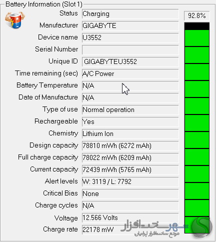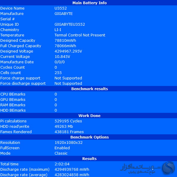 - باقیمانده شارژ باتری پس از اتمام کارکرد موارد بالا: 58.2%