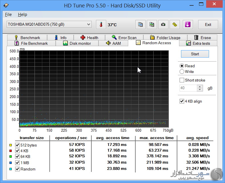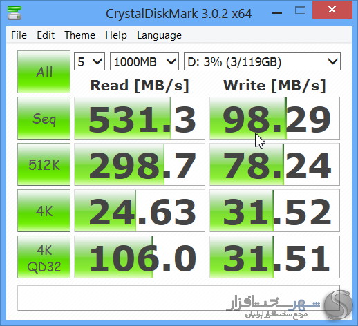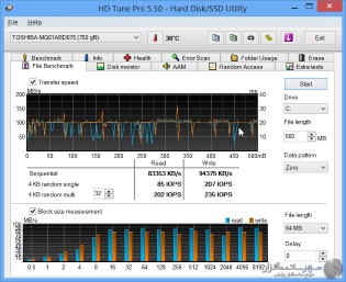 نوبت به تست هارد و حافظه SSD می رسد، مدلی که در اختیار شهر سخت افزار قرار گرفته است مجهز به یک هارد دیسک 750 گیگابایتی ساخت توشیبا بوده و یک SSD mSATA با ظرفیت 128 گیگابایت در اختیار دارد.