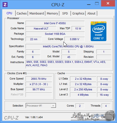 - پردازنده: Intel Core i7 4500U دو هسته ای از نسل چهارم Haswell با سرعت 1.8-3.0 گیگاهرتز و 4 مگابایت کش (منبع)