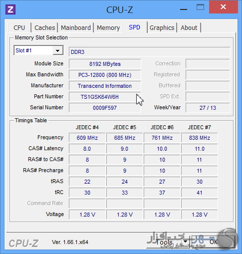 اطلاعات بیشتر در این مورد را می توانید در سایت ترنسند و یا در برنامه CPU-Z مشاهده کنید:
