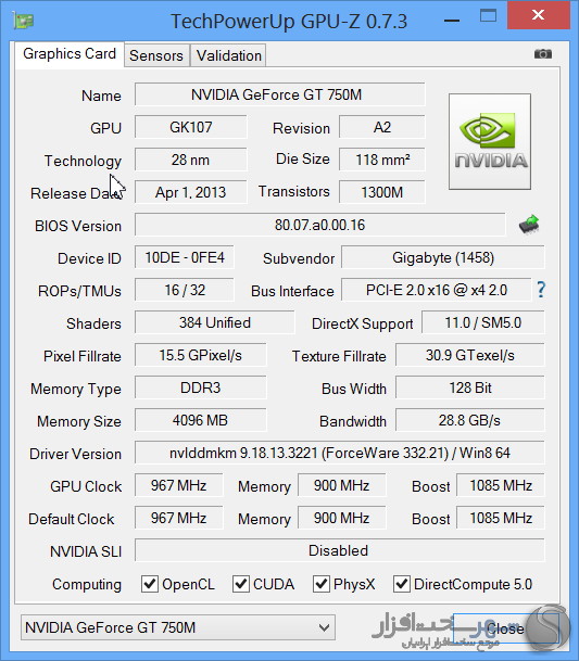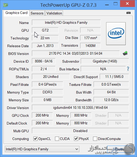 اطلاعات کاملتر در مورد این دو چیپ را در برنامه GPU-Z می توانید مشاهده کنید یا به سایت نوت بوک چک برای گرافیک اینتل یا انویدیا مراجعه کنید: