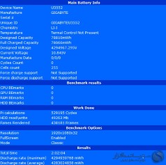 نتیجه گیری: باتری در نظر گرفته شده برای U35F عملکردی کاملاً رضایت بخش را نشان می دهد، باتری 6830 میلی آمپری توان زنده ماندن بالای 10 ساعت در حالت استندبای را دارا است و همچنین در تست های ترکیبی عمر باتری بیش از 50% در اختیار شما قرار می دهد. بطور کلی با یک بار شارژ باتری می توانید در روز تمامی کارهای روزانه را انجام دهید و حتی در آخر مقداری شارژ باقی مانده نیز داشته باشید.