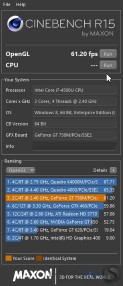 با این حساب ما با یک کانفیگ و سخت افزار نسبتاً رده بالا طرف هستیم که می تواند بار پردازشی بالایی را تحمل کند و مناسب اجرای نرم افزاری تخصصی و تا حدودی گیمینگ می باشد. طبق معمول ابتدا به سراغ نرم افزار Cinebench R15 می رویم: