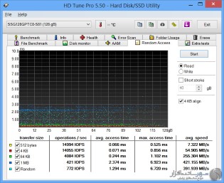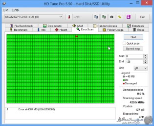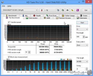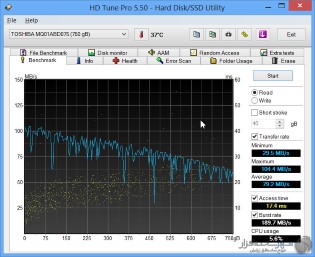 نتایج تست HD Tune Pro 5.5 و CrystalDiskMark سرعت بالای حافظه SSD و هارد دیسک این اولترابوک را به خوبی نشان می دهند هرچند در مدلی برای تست در اختیار داشتیم حافظه SSD دارای یک بیت سوخته بود که تست HD Tune Pro را ناقص گذاشت.