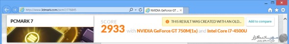نرم افزار بعدی مورد استفاده PCMark7 است و U35F امتیاز نسبتاً متوسط 2933 را با پردازنده و کارت گرافیک GT750M کسب کرده است.
