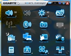 گیگابایت برای تجربه ای بهتر با U35F نرم افزار انحصاری خود به نام Smart Manager را بر روی وبسایت خود عرضه کرده است که به کمک Smart Manager می توانید بدون نیاز به Power Option ویندوز بسیاری از تنظیمات مربوط به انرژی و وضعیت کلی دستگاه را تغییر دهید. به عنوان مثال روشن یا خاموش کردن تجهیزات ارتباطی و یا تنظیم سرعت فن دستگاه و همچنین نور پس زمینه صفحه کلید در اینجا نیز قابل دسترسی هستند.