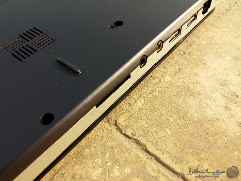 جک هدفون نیز کاربری دوگانه دارد و می تواند به عنوان خروجی SPDIF یا اپتیکال صوتی نیز عمل کند تا بهترین کیفیت ممکن را ارائه نماید. اسلات کارت حافظه SD و MMC نیز بدون درپوش محافظ است که می تواند ریسک ورود گرد و غبار به داخل دستگاه را افزایش دهد. پورت امنیتی Kensington نیز تعبیه شده است تا بتوانید با اتصال قفل به بدنه لپ تاپ از سرقت آن جلوگیری نمایید.