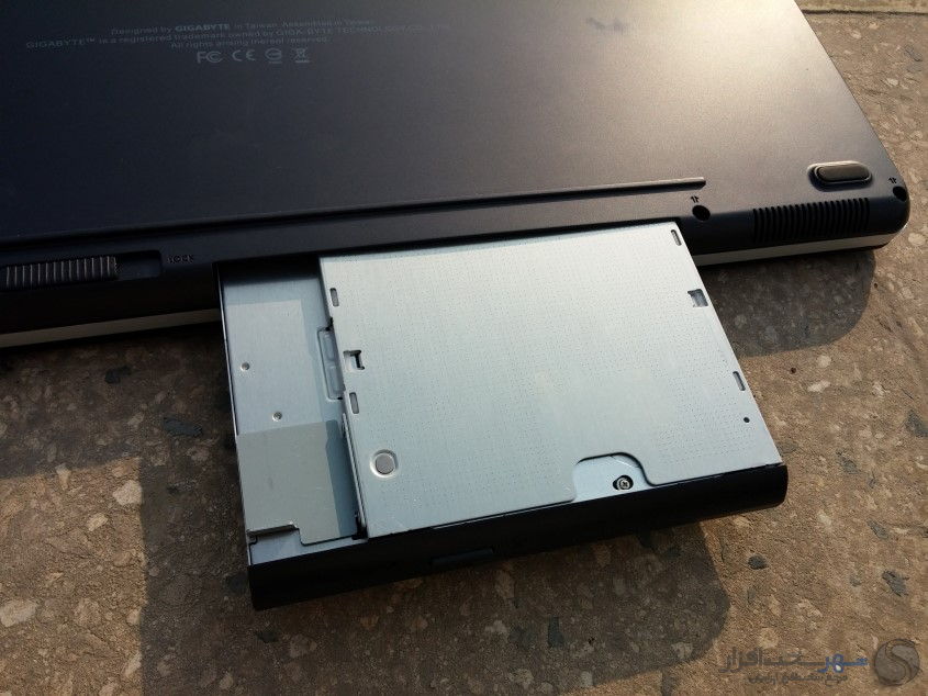 اولترابوک گیگابایت جزو معدود اولترابوک هایی است که از درایو داخلی DVD بهره می برد که به قابلیت ویژه ای که در ادامه مطلب به آن خواهیم پرداخت تجهیز شده است. قاب پشتی لپ تاپ به نوعی طراحی شده است تا کمتر اثر انگشت را به خود جذب کند. همچنین حاشیه های دور نمایشگر نیز دارای کمی زبری بوده و ضد جذب اثر انگشت می باشند.