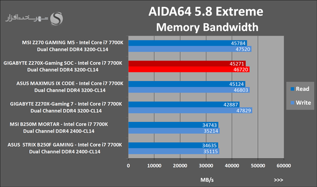 تست پهنای باند و Latency حافظه توسط نرمافزار AIDA64 5.8