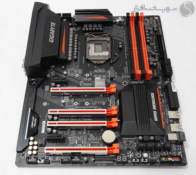 آنچه بهروشنی مشخص است گیگابایت برای این مادربرد 250 دلاری در بخش مدار رگولاتور ولتاژ پردازنده و ماژولهای حافظه سنگ تمام گذاشته است. این نوع ترکیب و پیکربندی معمولاً در مادربردهای این رنج قیمت مشاهده نمیشوند.