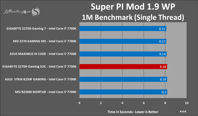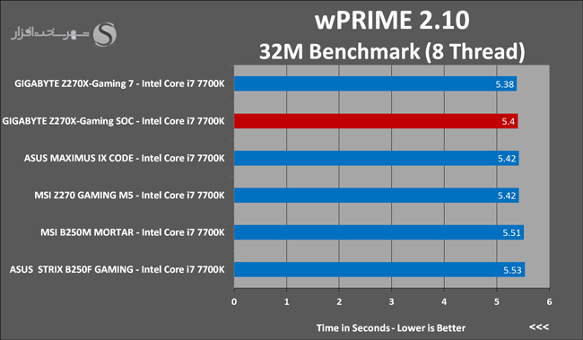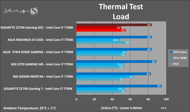 ناگفته نماند در میان تمامی مادربردهای مبتنی بر این پلتفرم که تاکنون در لابراتوار شهر سختافزار تست شدهاند این مادربرد تنها مدلی است که در شرایط تعیین شده قادر به پایدار نگاه داشتن این پردازنده در فرکانس 5.1GHz شده است.