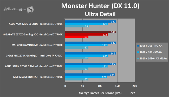 Monster Hunter که یک بازی تحت شبکه پرطرفدار است محصول کمپانی Tencent Games بوده و موتور گرافیکی بسیار قدرتمند Crytek به همراه قابلیتهای واقعگرایانه جدید GameWorks کمپانی Nvidia مثل NVIDIA PhysX Clothing, NVIDIA Hairworks و NVIDIA HBAO+ را با خود همراه دارد. ویژگیهای نامبرده بهعلاوه تکنولوژیهای مدرن Real Time Rendering, Physical Based Shading, Realistic Vegetation Rendering همگی باعث شدهاند تا Benchmark این بازی در حال حاضر یکی از مدرنترین و در عین حال زیباترین دموهای گرافیکی مبتنی بر DirectX 11 محسوب شود.
