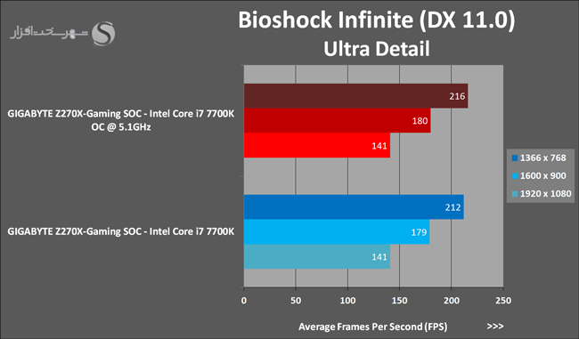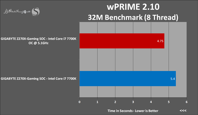 همچنین در نمودارهای زیر میتوانید عملکرد پردازنده Intel Core i7 7700K را در فرکانس فوق ملاحظه کنید: