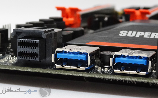 در کنار پورتهای نام برده 2 پورت USB 3.0 Type-A جهت دسترسی سریع اورکلاکرها به پورت USB و یک پورت U.2 32Gb/s نیز تعبیه شده است.